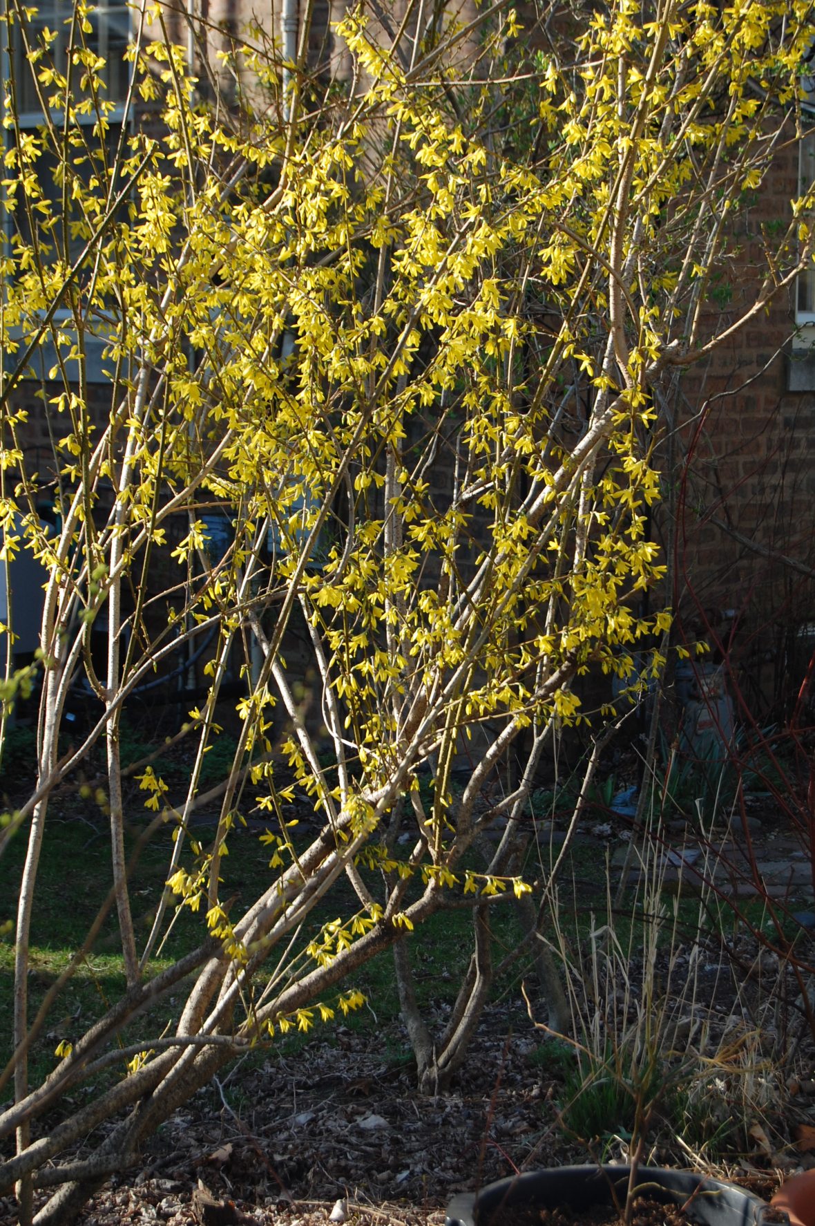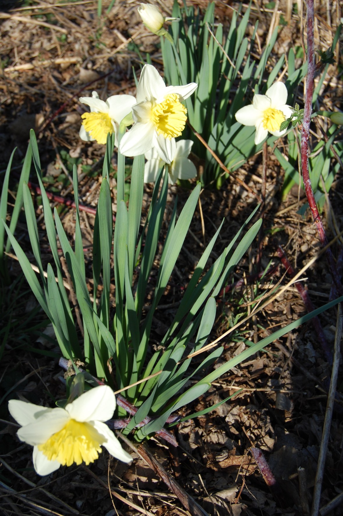 We’ve had several days with temperatures up in the 80s. On the plus side, the daffodils have begun their show. The forsythia and the spicebush are blooming. The spicebush is much more understated than the forsythia, though still lovely. Spicebush leaves have a lovely citrus scent when crusched, and I planted half a dozen because the red berries are supposed to be of very high value to the birds during fall migration. I just started getting berries last fall – hoping for a much bigger crop this year.