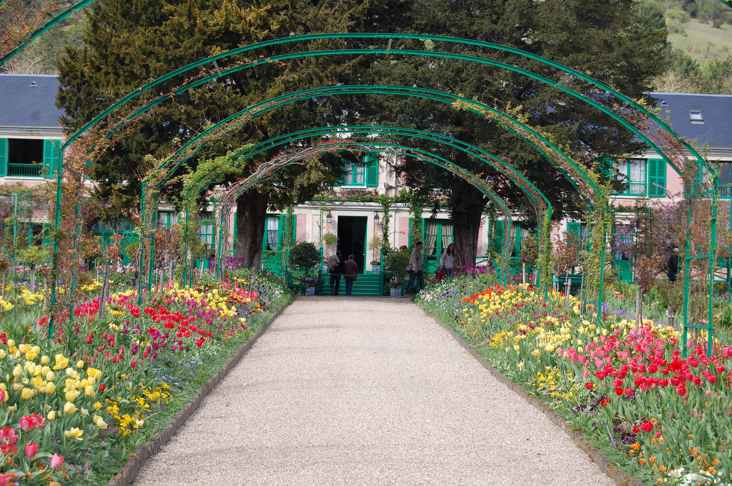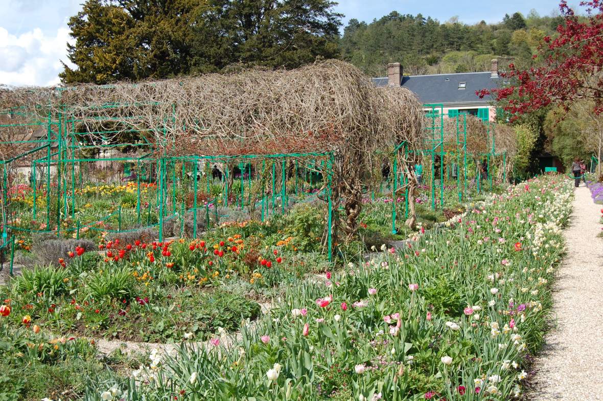 I’m planning three posts about the gardens. Judy took over 1,500 pictures, and I’ll write my posts as she sorts through her photos. First, I want to write about one of the most beautiful gardens we’ve ever seen anywhere: Claude Monet’s garden in Giverney, about 50 miles from Paris.