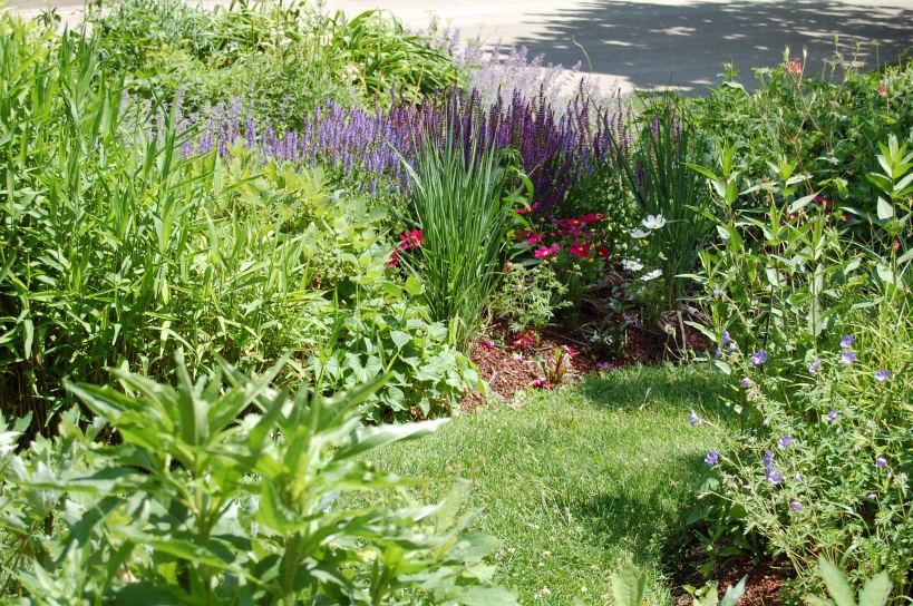 Finally, gardening helps me be more connected to my human community. I’ve gotten to know a number of neighbors (especially the dog walkers and those with small children) while gardening in the front yard. Without gardening, I’m sure that community connection would be greatly diminished. Some of the neighbors think my obsession is a little odd, but more often I hear expressions of admiration. At one point a neighbor waved at my front yard, bursting with the colors of mid-summer, and told me: “This is a joy!” Yes, that about sums it up.