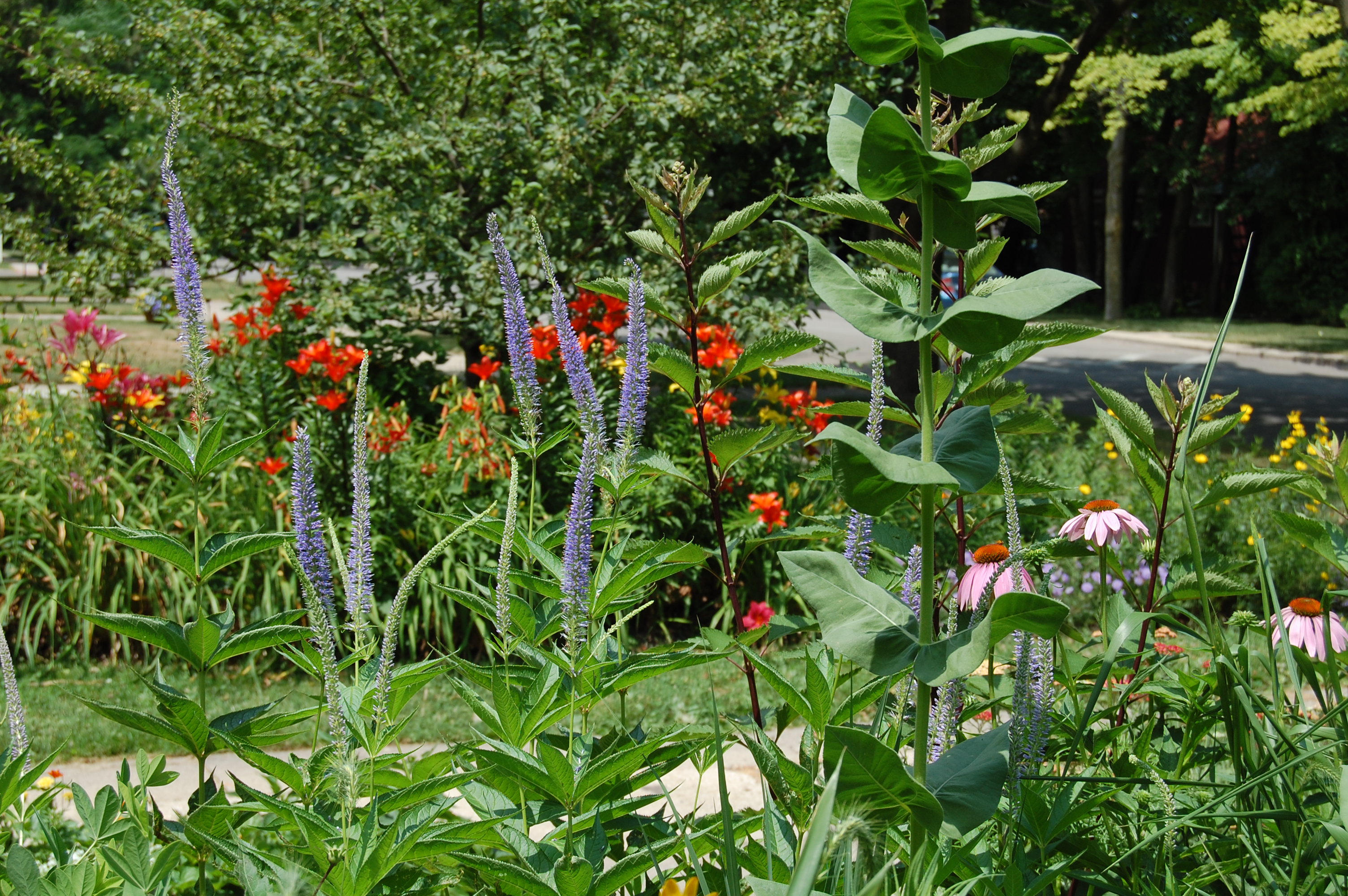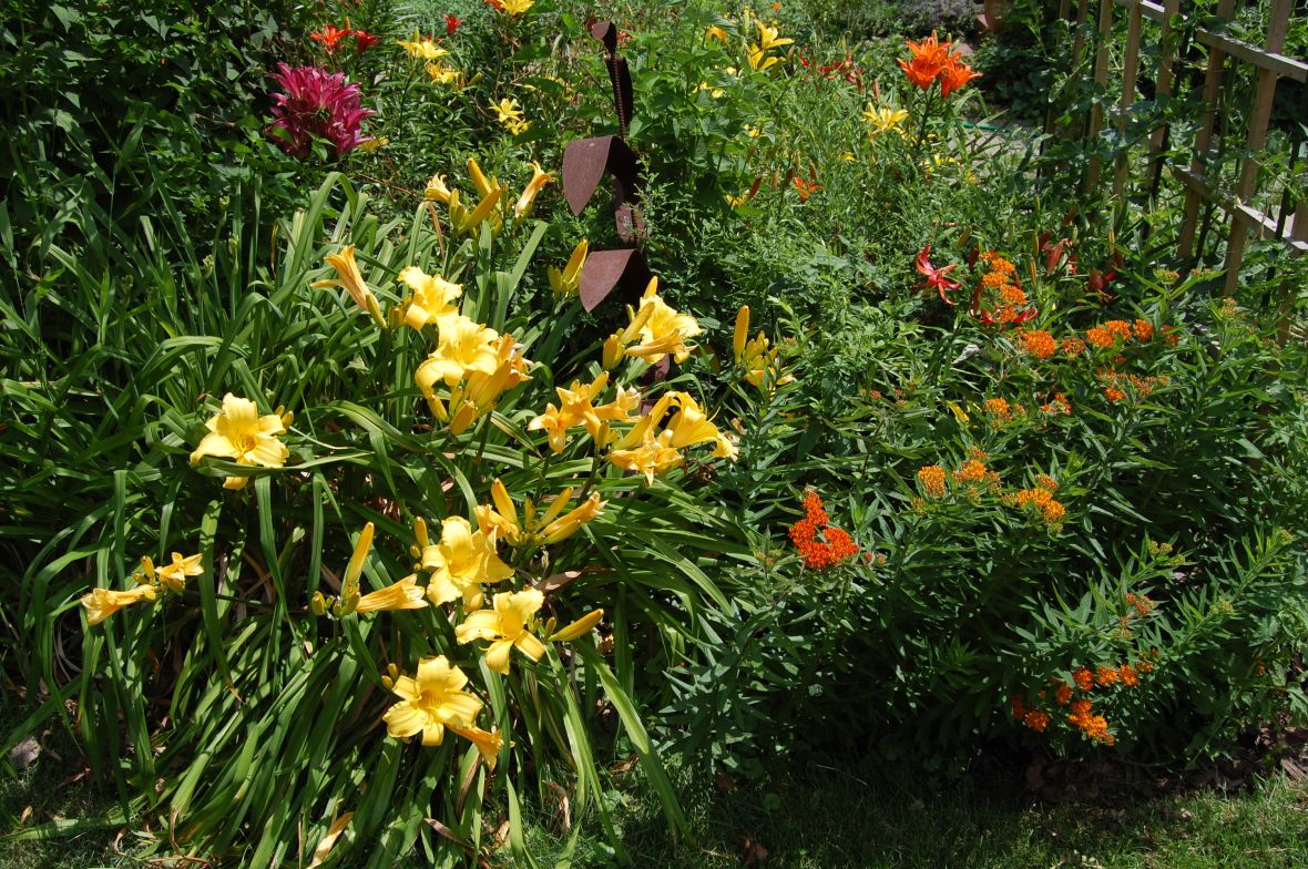 Succession of Blooms. In case you were in any doubt, the flowers in my garden as well as the calendar will tell you that we have crossed the line from Spring into Summer. The Columbine, Penstemon, and even the Salvia are done. Now the Swamp Milkweed (the white Asclepias incarnata ‘Ice Ballet’ the red/pink straight species) have begun blooming, along with the daylilies (Hemerocallis ‘Chicago Star’ and ‘Eye-Yi-Yi’) and Coreopsis (Coreopsis lanceolata and grandiflora ‘Sunfire’), and the Purple Coneflower (Echinacea purpurea). The flower heads are forming on the Joe Pye Weeds and the Sunflowers. The Monardas should start blooming within a week or so. Yup, Summer has started.