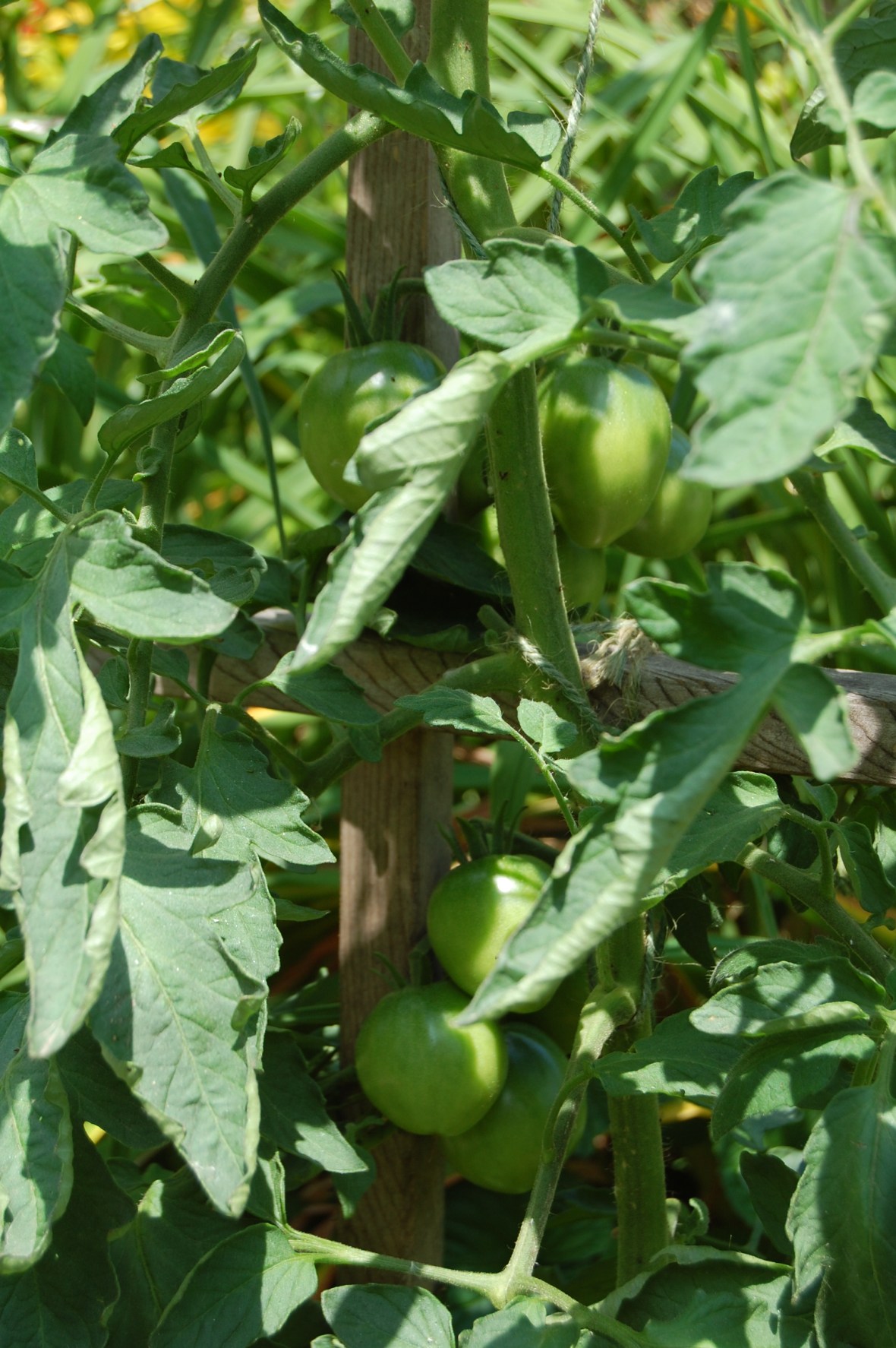 Lovely yard! I grew a yellow cherry tomato plant one year, not realizing it could reach 10 feet in height. It grew up and up and then fell over, taking its support with it. The fruit I could not eat or give away went into the freezer whole.