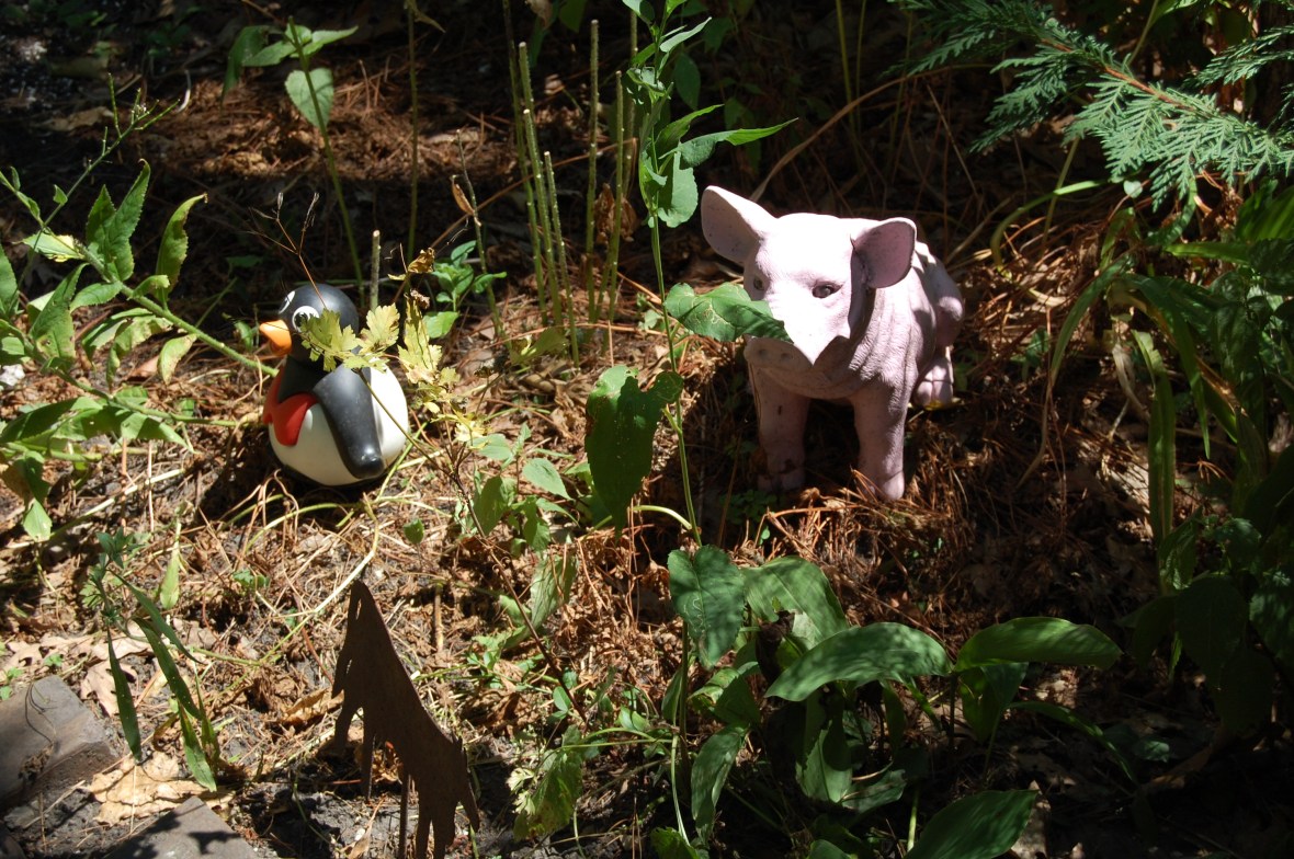 First of all, for the most part this Garden Walk included gardeners’ gardens, and the homeowners were very friendly and eager to discuss their plants and designs. While many of the gardens had been installed with the help of professionals, the owners also had hands on involvement, as indicated by the following objets d’art.