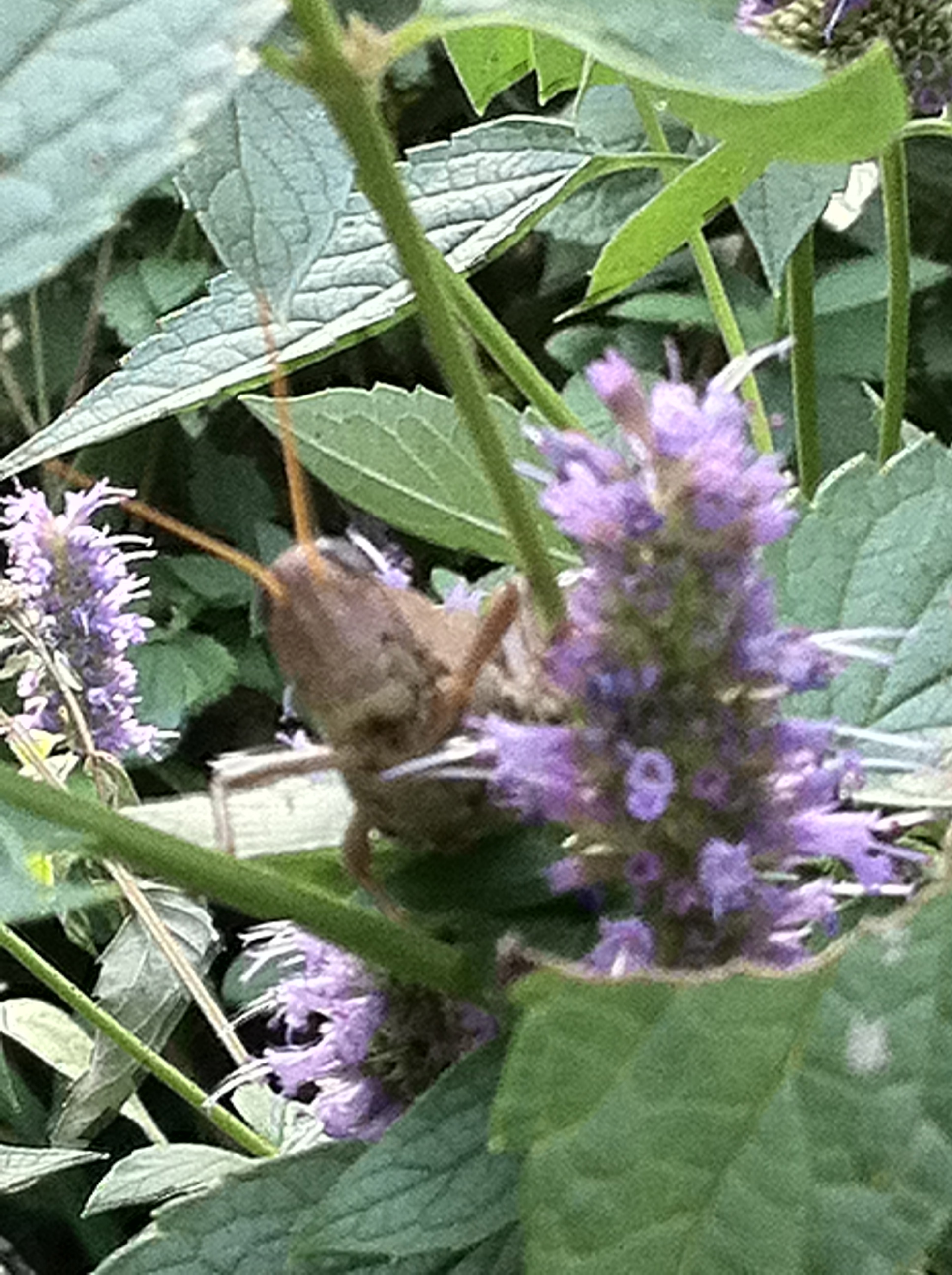 Oh, cute little grasshopper (that ate CHICAGO!)! When they can’t find anything succulent and green to chomp on they BITE gardeners. Locusts indeed! I don’t like them, but 1 or 2 probably won’t chew enough of any one thing to make a difference, except probably your roses and the already pruned spice bush. Insects are perverse. We have quite a few in the family garden, but no damage that I can see. We usually see them in gardens where there are juicy hay fields nearby.