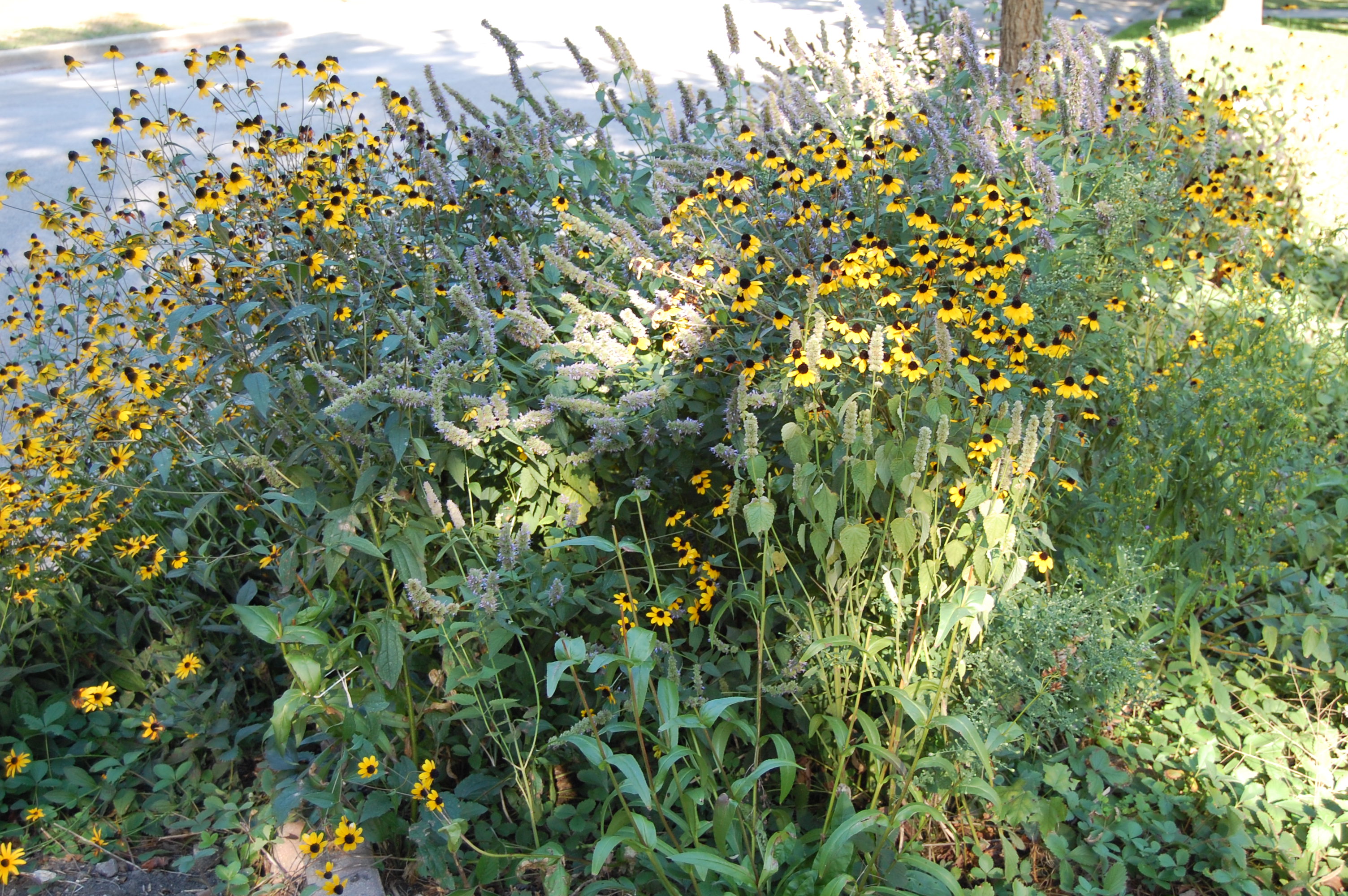 There’s also Brown Eyed Susan (Rudbeckia triloba) and Anise Hyssop (Agastache foeniculum) in the parkway.