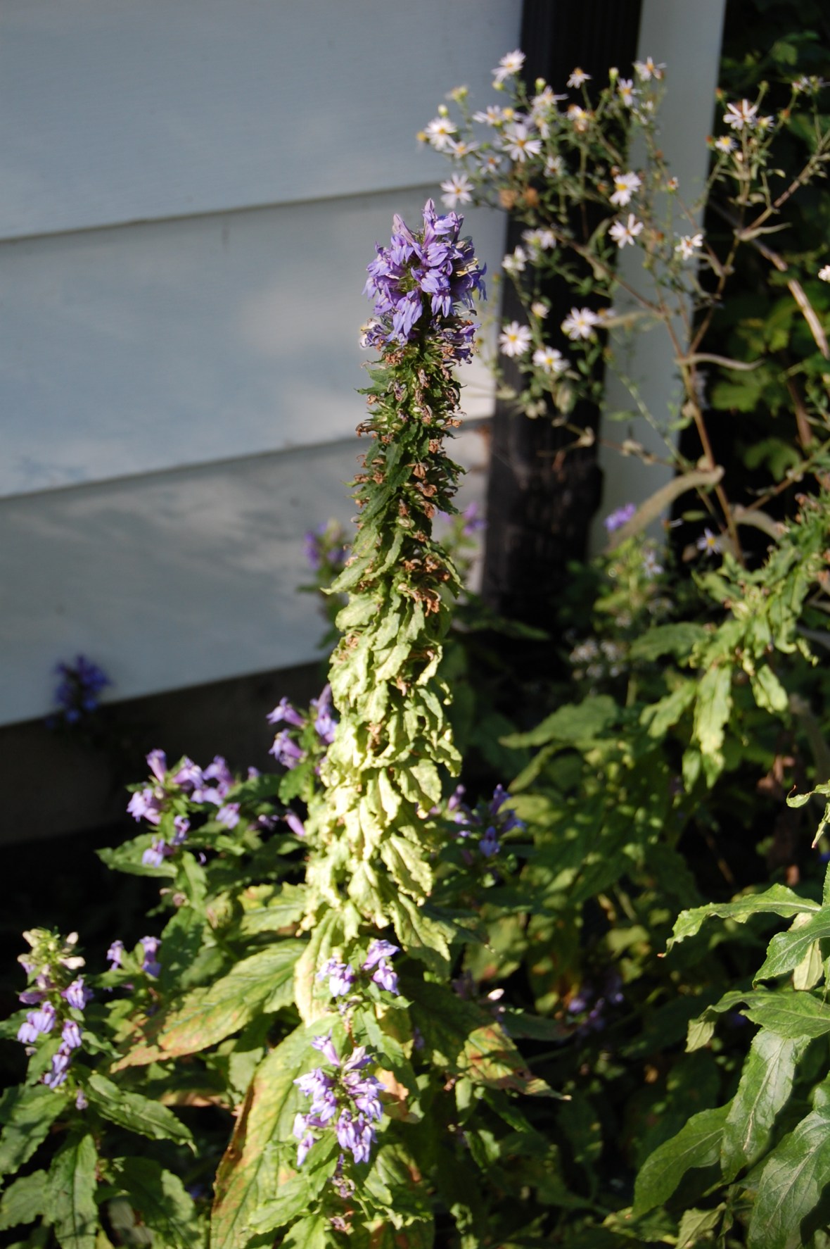 The Great Blue Lobelia (Lobelia syphilitica) seemed to bloom only briefly this season. Whenever I look at this plant I think that whoever came up with the botanical name is definitely guilty of false advertising, or maybe wishful thinking. The name is derived from the incorrect but once common belief that this plant cures syphilis. Couldn’t the taxonomists take time out from messing up perfectly adequate botanical names and think up something a little less unseemly for this poor flower?