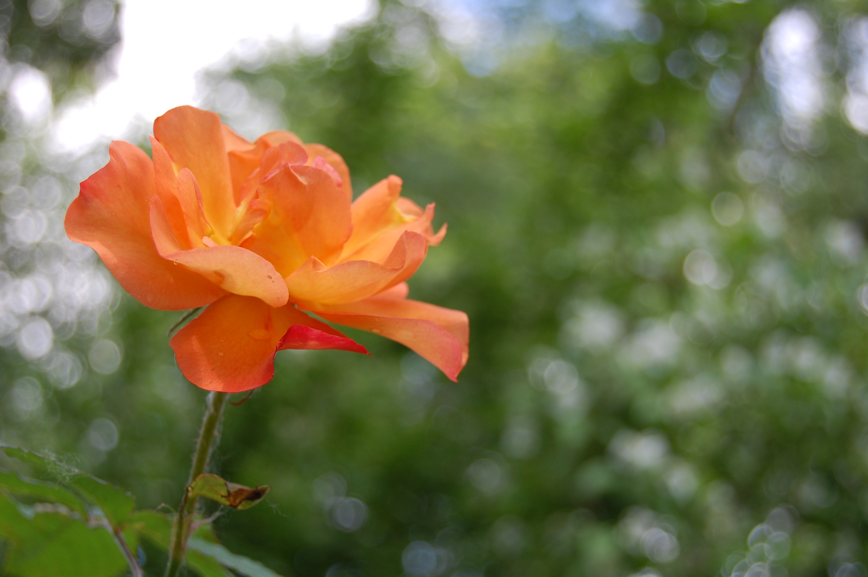 Today it has finally turned truly warm at last. The orange rose, Westerland, is very nice but it blooms sparsely and I fear it is not too healthy.