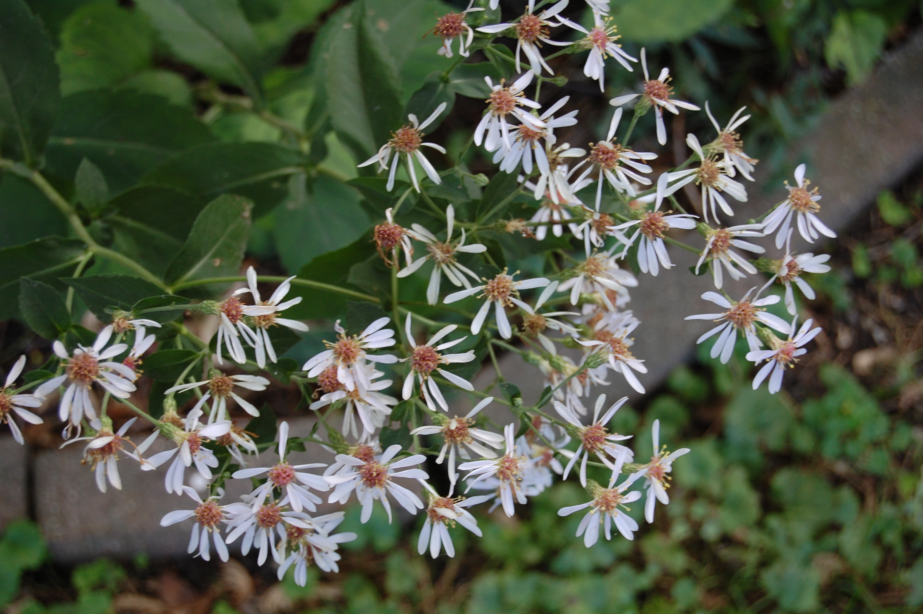 Then there are a whole bunch of asters that are loved by aster fanatics but look rather weedy to most people who are immune to the charms of their subtle but fascinating distinctions: Big Leaf Aster (Symphiotrichum macrophyllum), Crooked Stem Aster (Symphyotrichum prenanthoides), Calico Aster (Symphyotrichum lateriflorum) etc., etc.. I have many of these.
