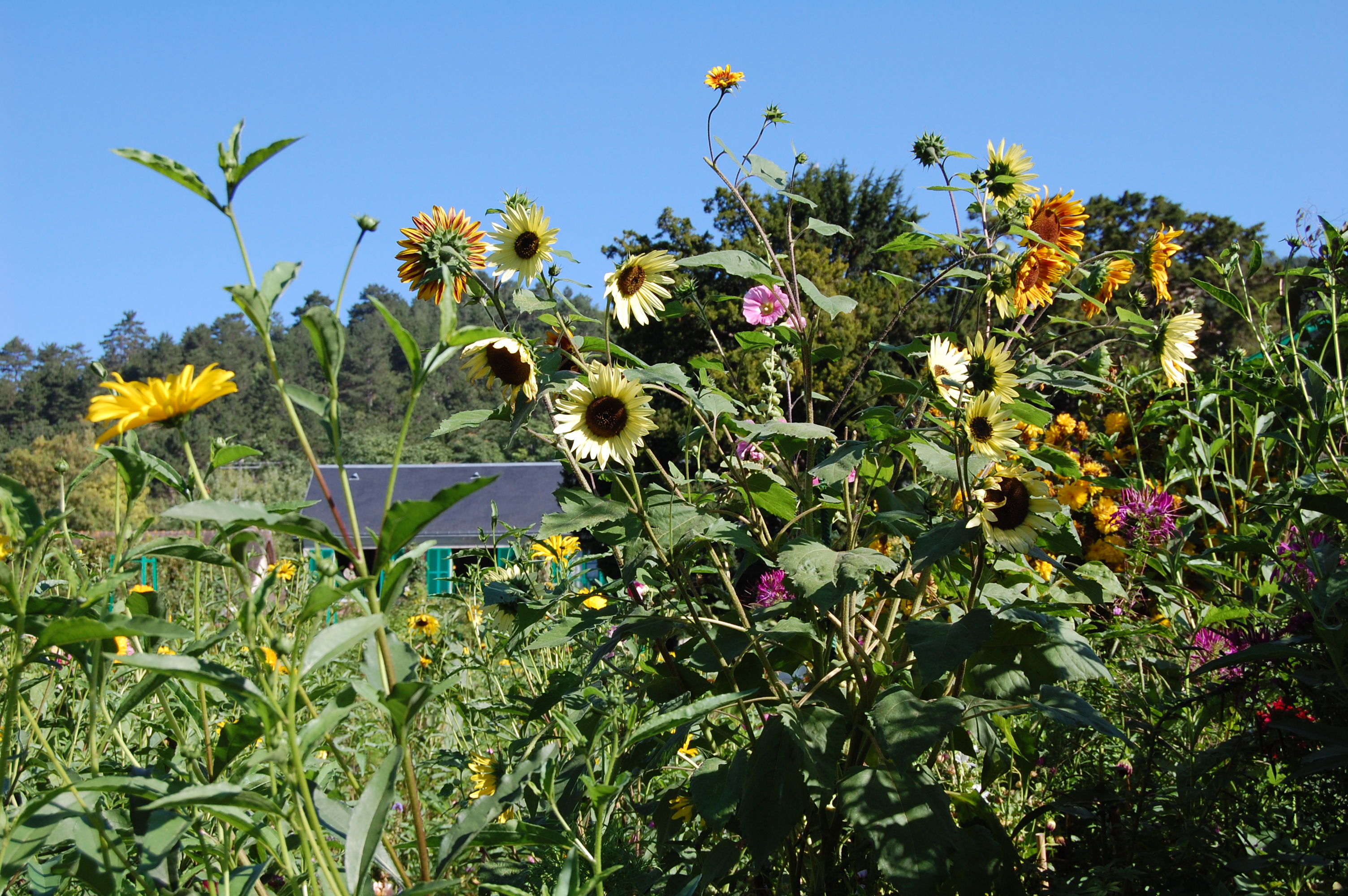Aha! Sunflowers held upright with stake and twine. If it’s good enough for Giverny, it’s good enough for me.