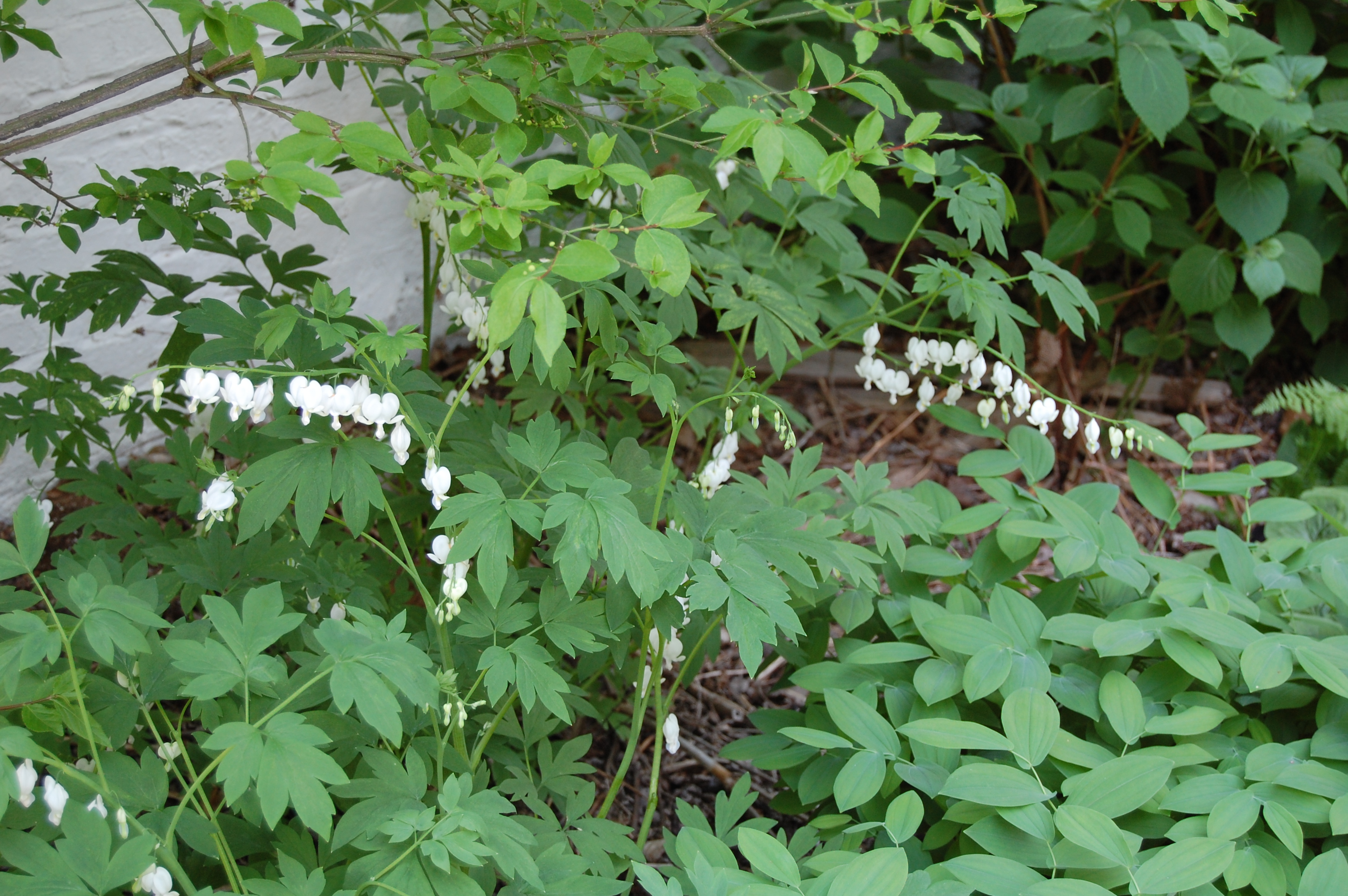 White Bleeding Heart along the east side of the garage.