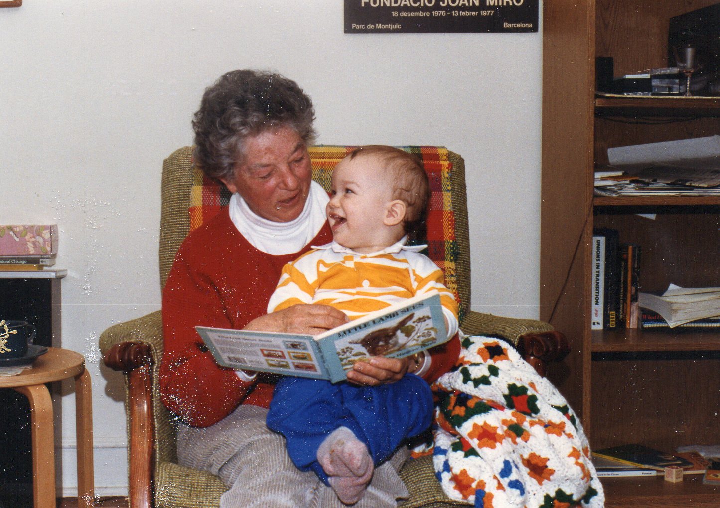 Reading this book made me go back and look at one of our old photo albums. This is my mother reading to Danny at about one year old (1988).