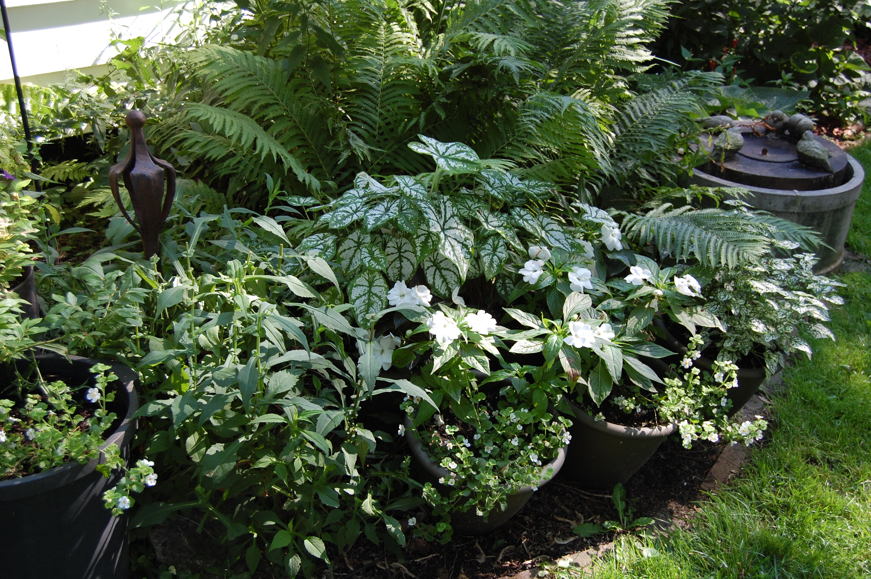 I love the combo of the ferns with the bleeding hearts and the white and green caladiums are lovely. This will be my first year growing them. I plan to put them in a window box. Can’t wait.