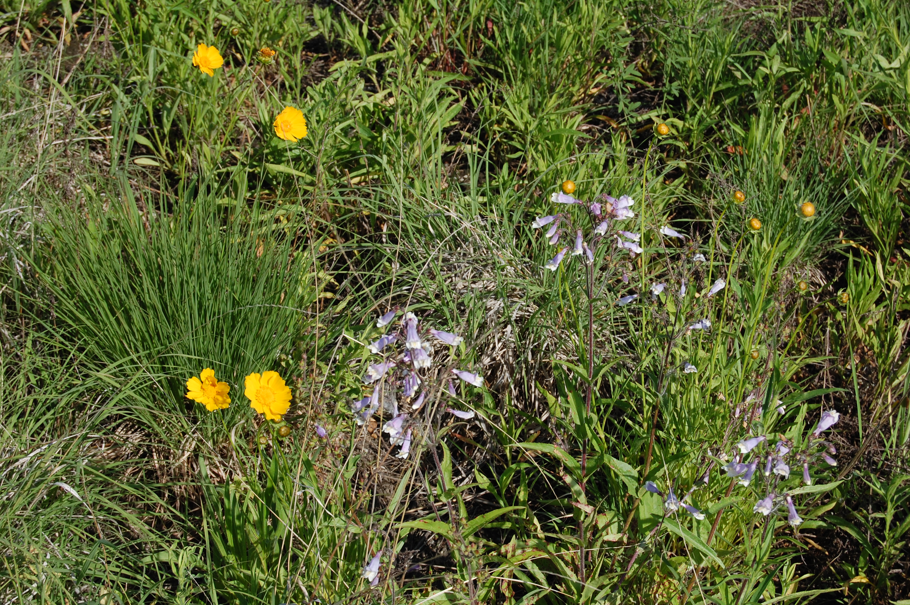 Along the way, we got to see some wildflowers. Right now is not when the prairie is at its most colorful, but we got to see both smooth Penstemon (Penstemon digitalis), and a blue variety I didn’t recognize.