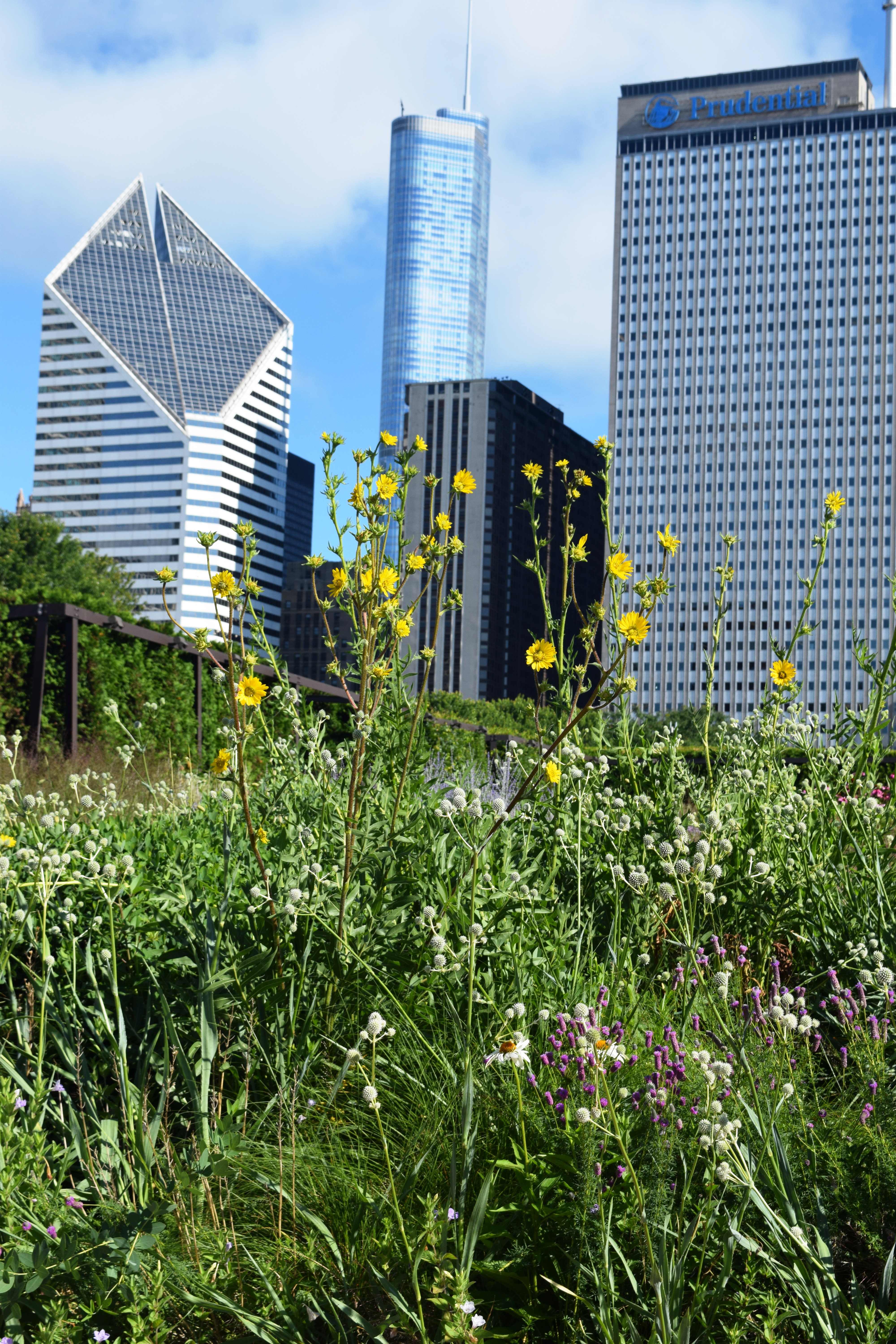 Compass plants (Silphium laciniatum) echo the Chicago skyline, or is it the other way around? Incidentally, the hedge around Lurie is called the Shoulder Hedge, a reference to the Carl Sandburg poem ‘Chicago’.