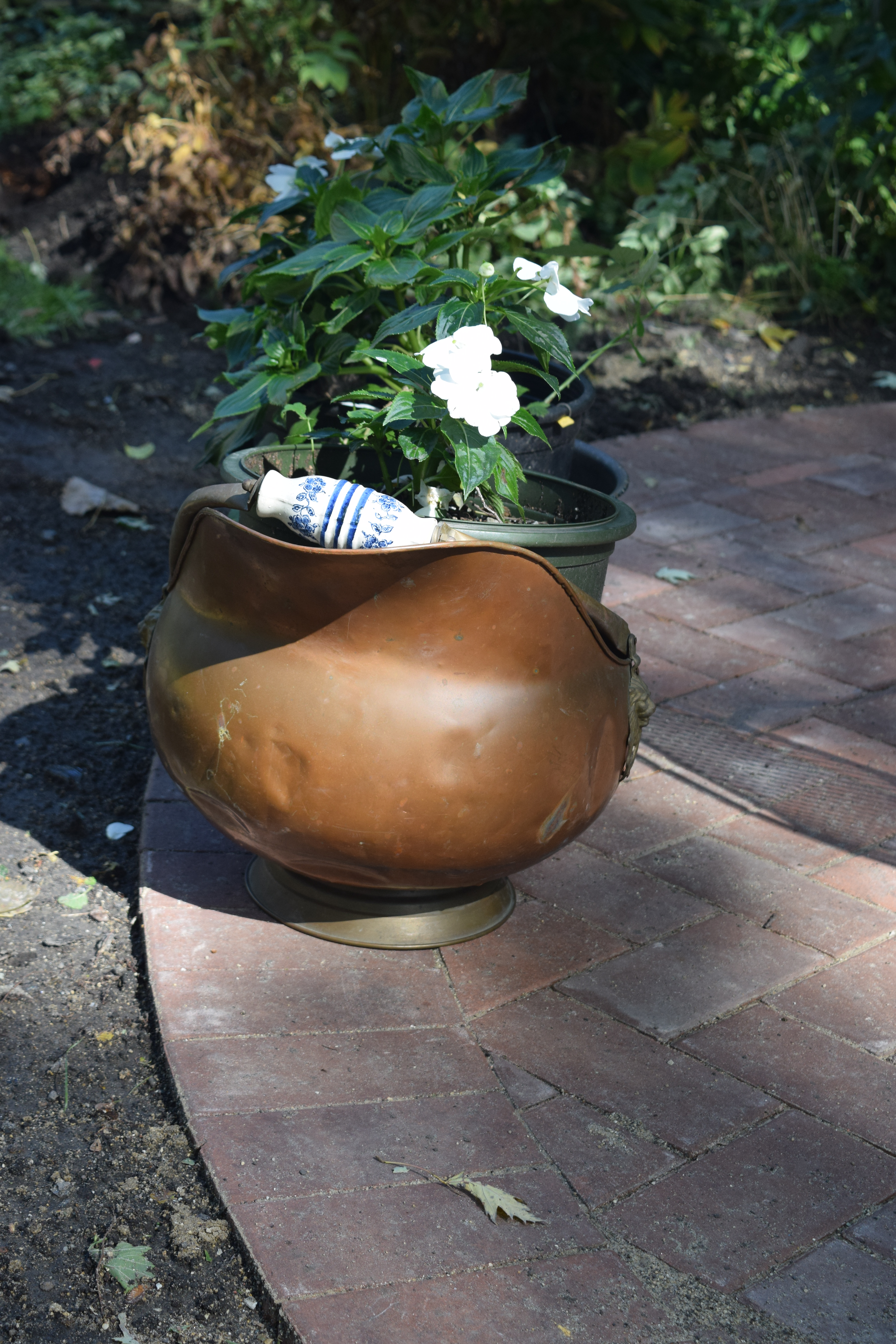 Incidentally, this is an old coal scuttle we found in Wisconsin. I'm using it as a planter by putting a grower's conainer inside.