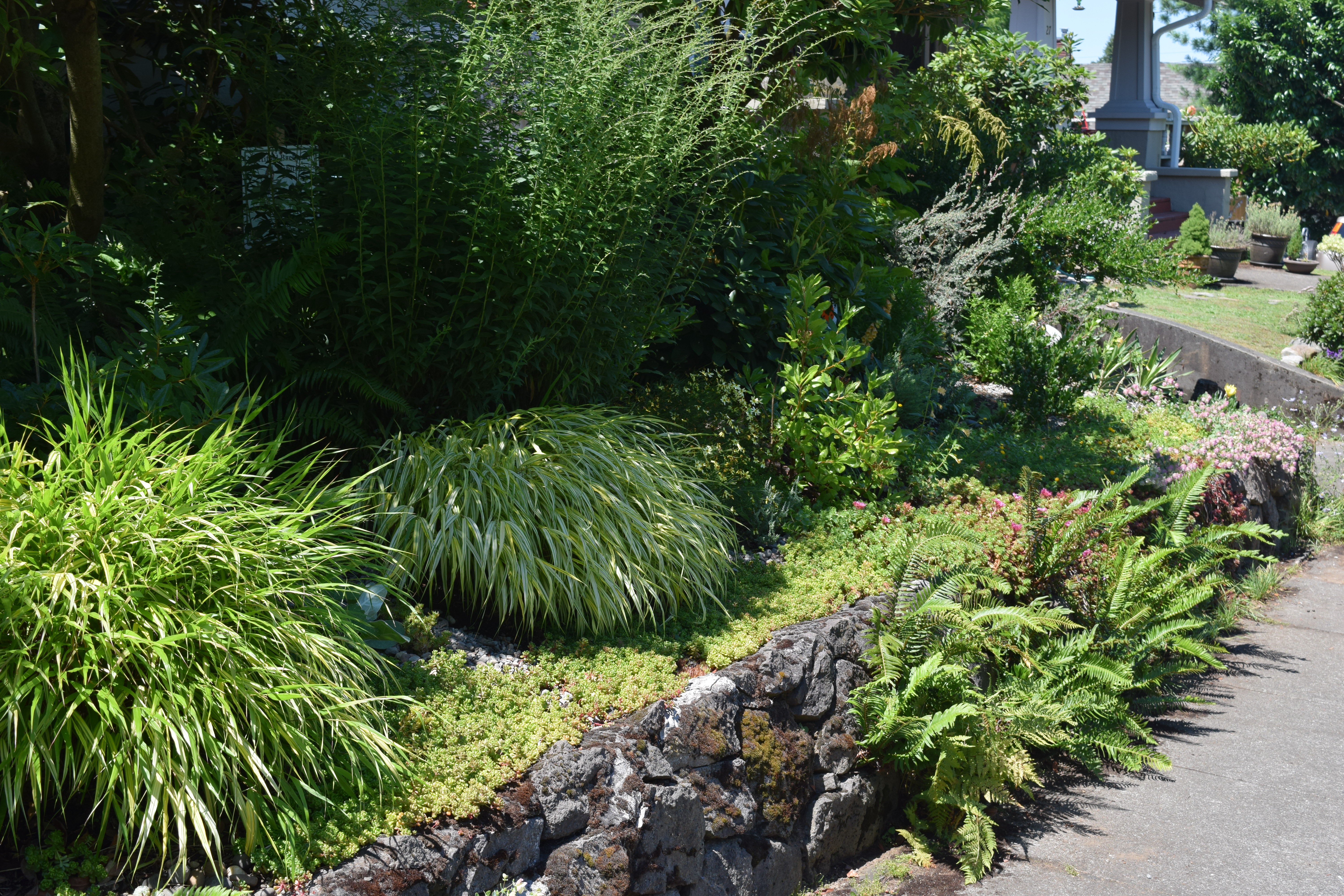 Tamara welcomes birds and other wildlife with feeders, bird baths, brush piles, bat houses, and 200 plant species native to the Pacific Northwest.