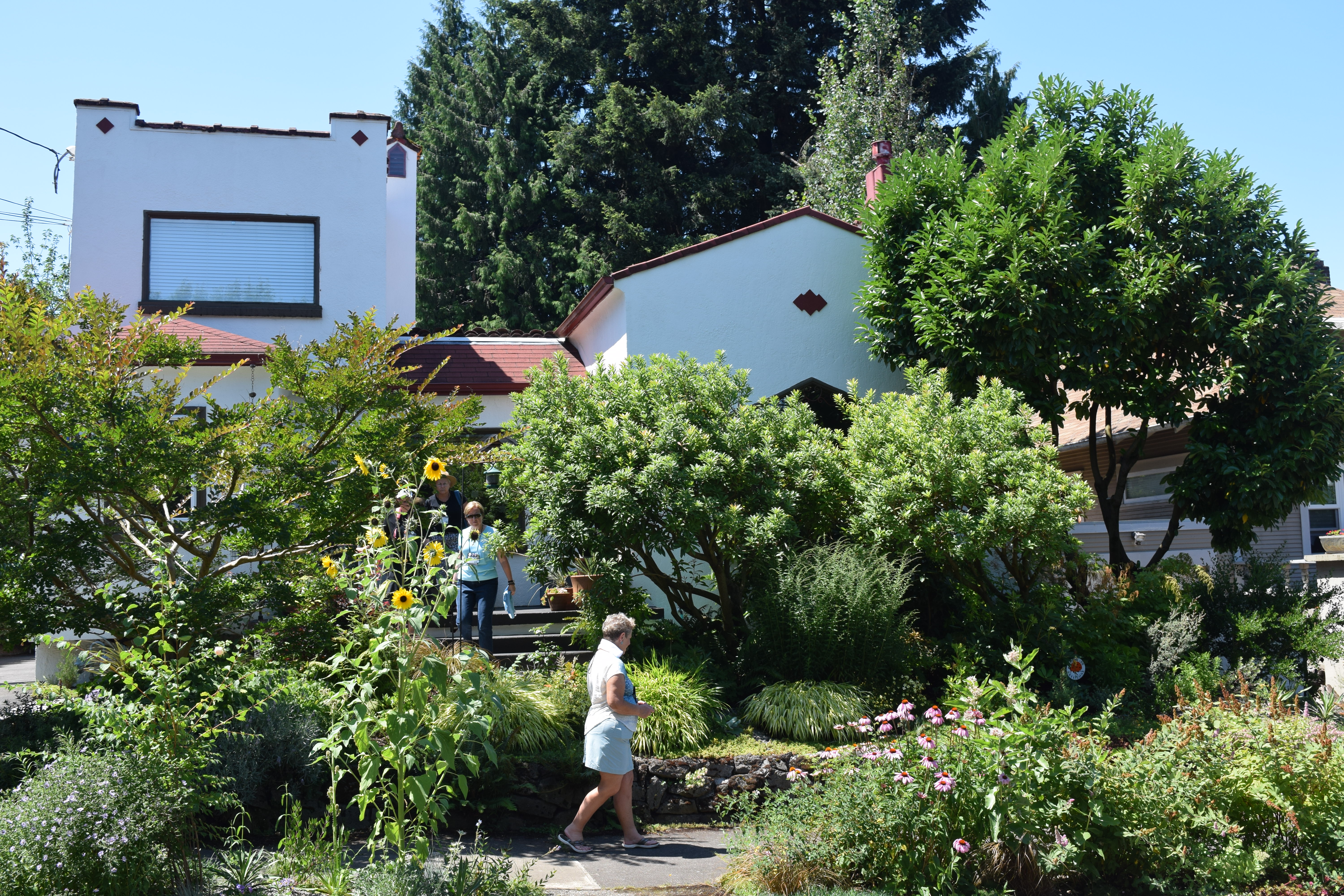 So another garden that we visited during the Portland Garden Bloggers Fling was that of Tamara, who writes the blog Chickadee Gardens. I liked that this wildlife-friendly garden is on a 50’x100′ city lot.