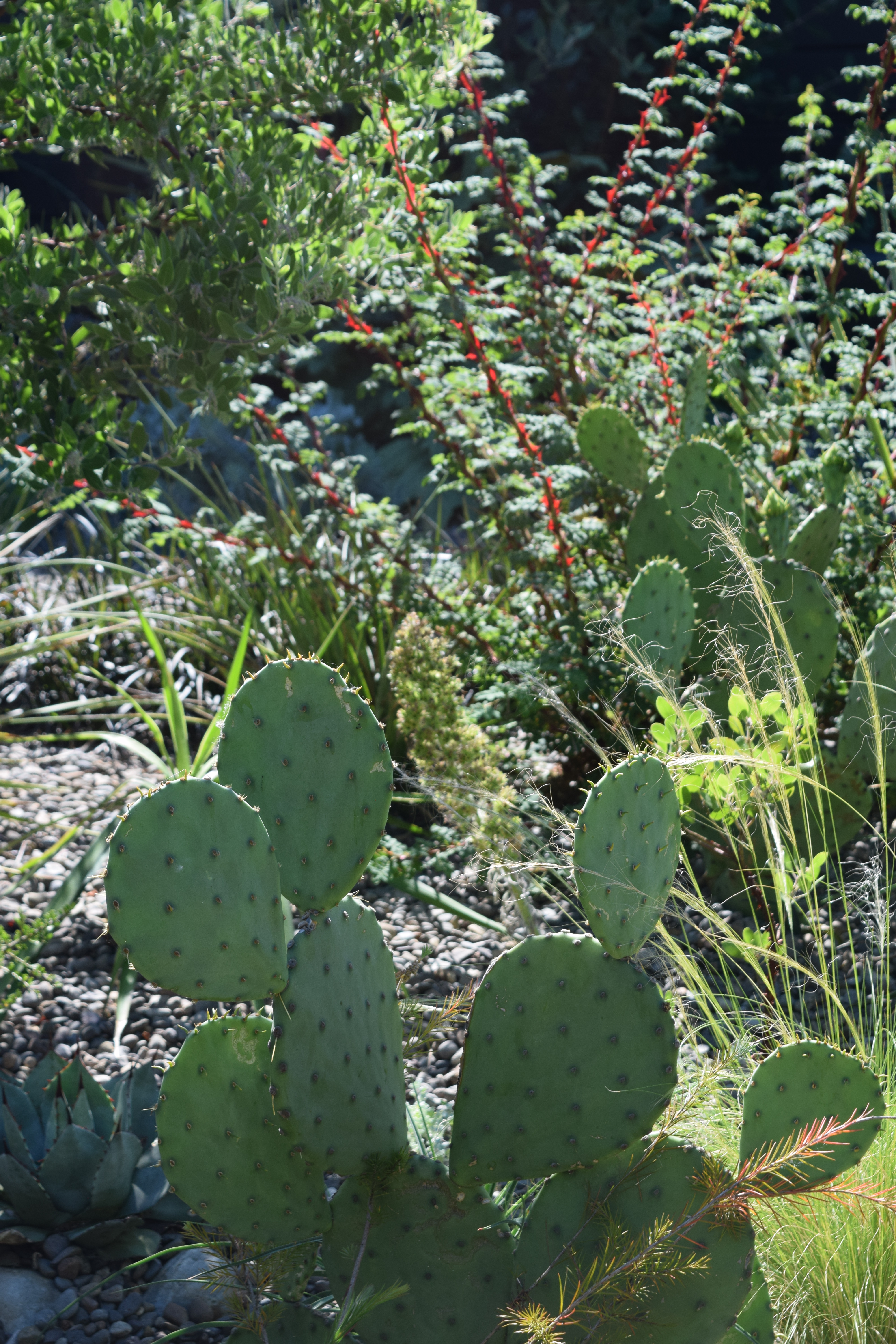 There’s a gravel garden out front with drought tolerant plants.