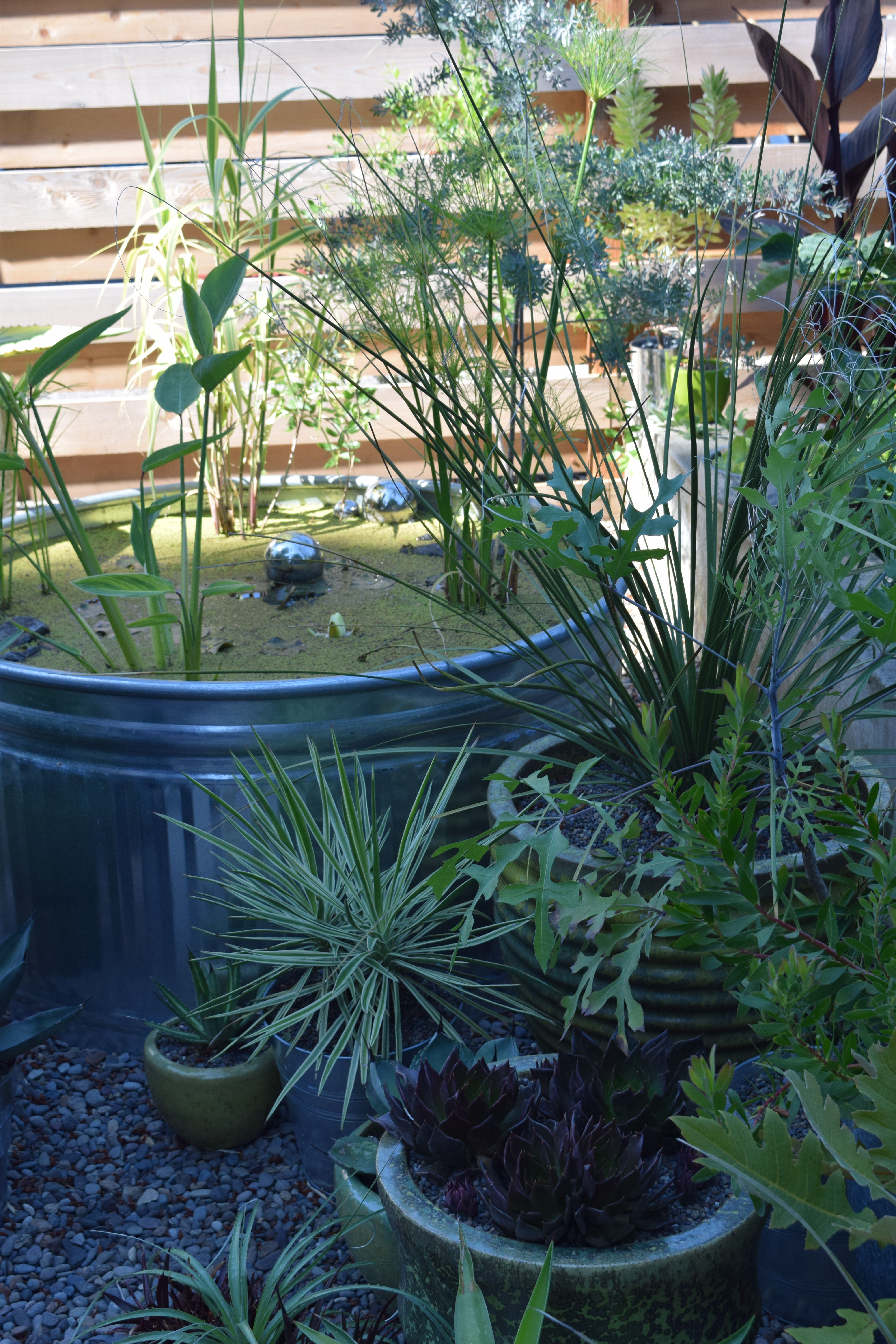 And a water feature in a stock tank.