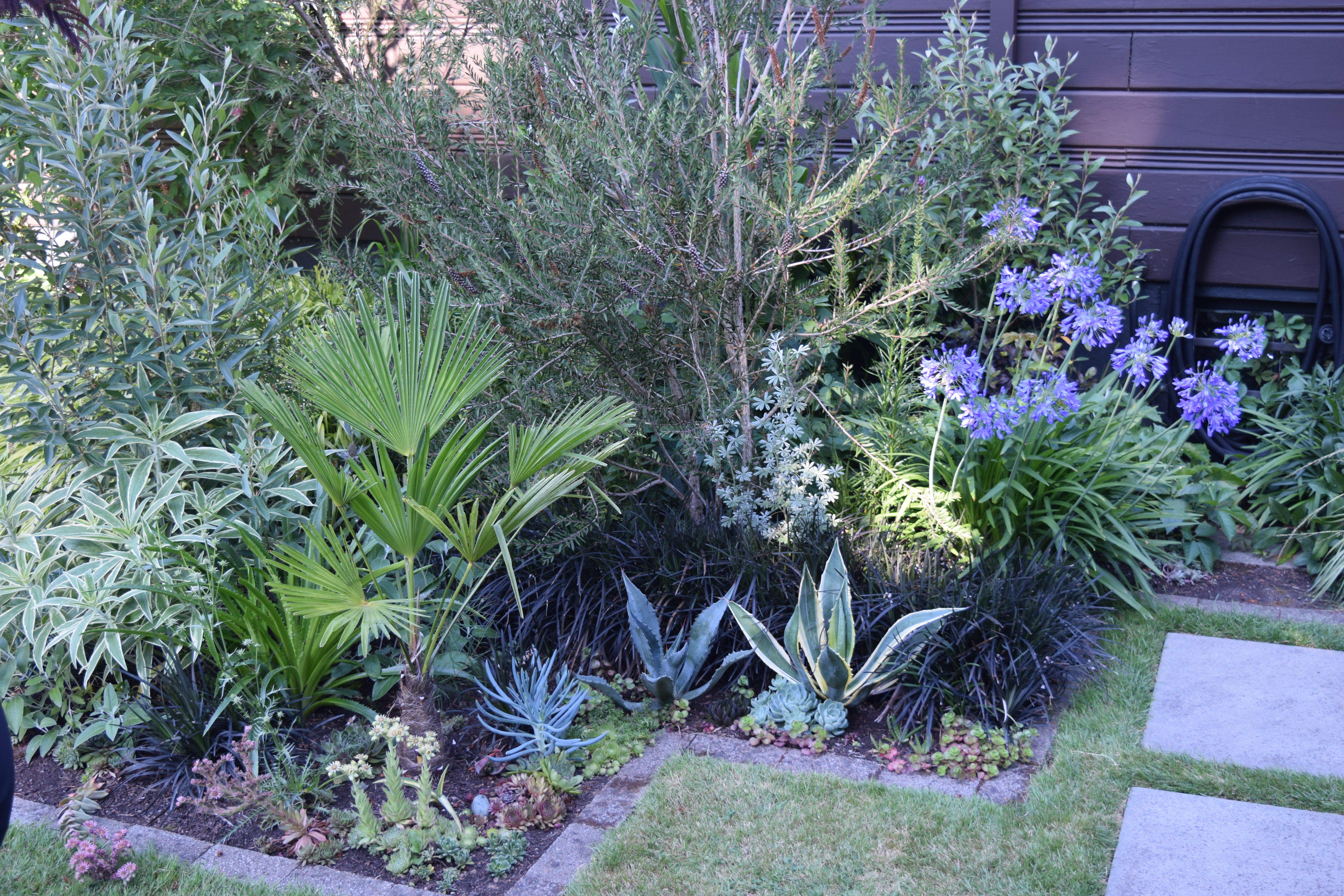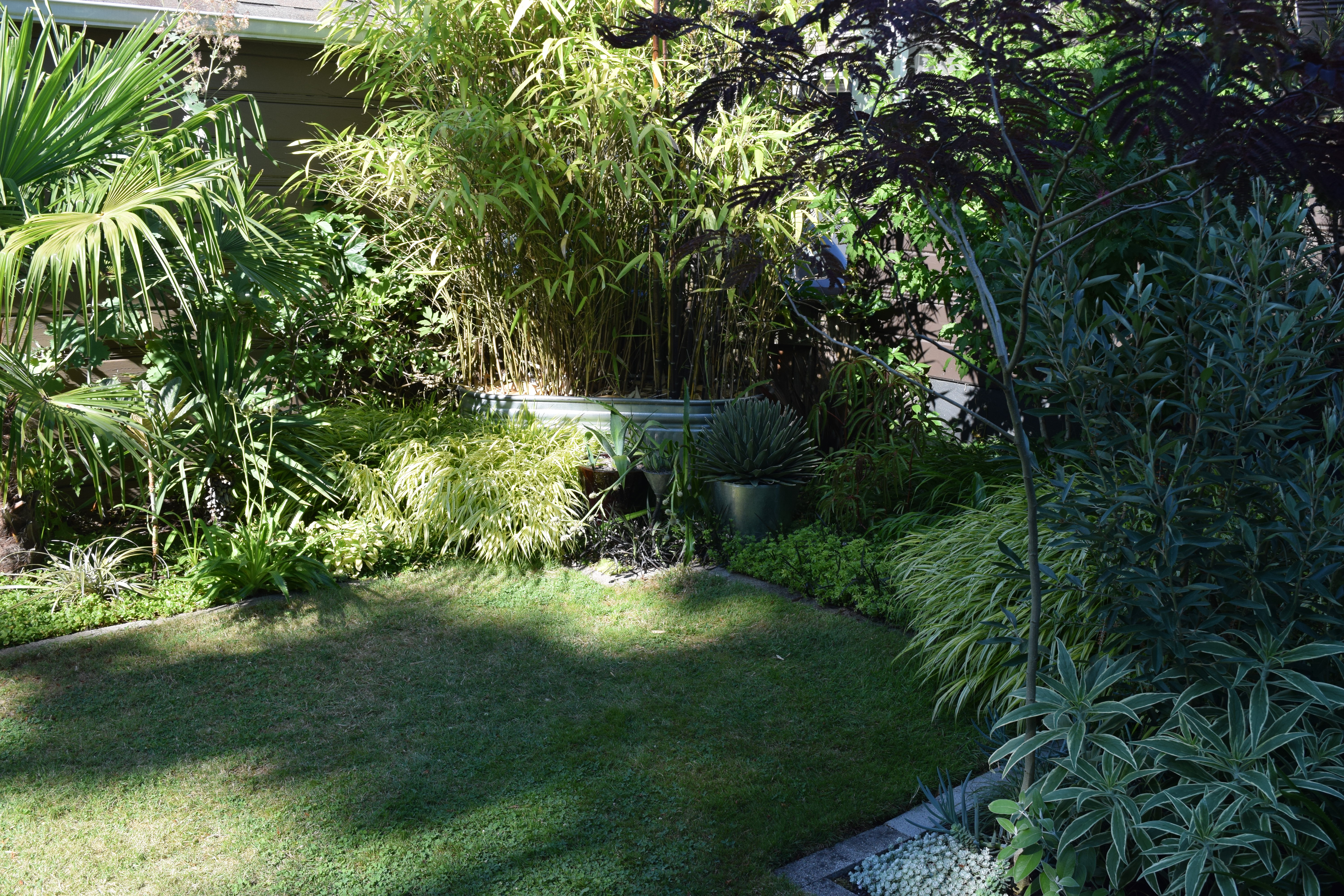 Straight lines and geometric shapes provide a nice quiet frame for the mix of foliage textures.
