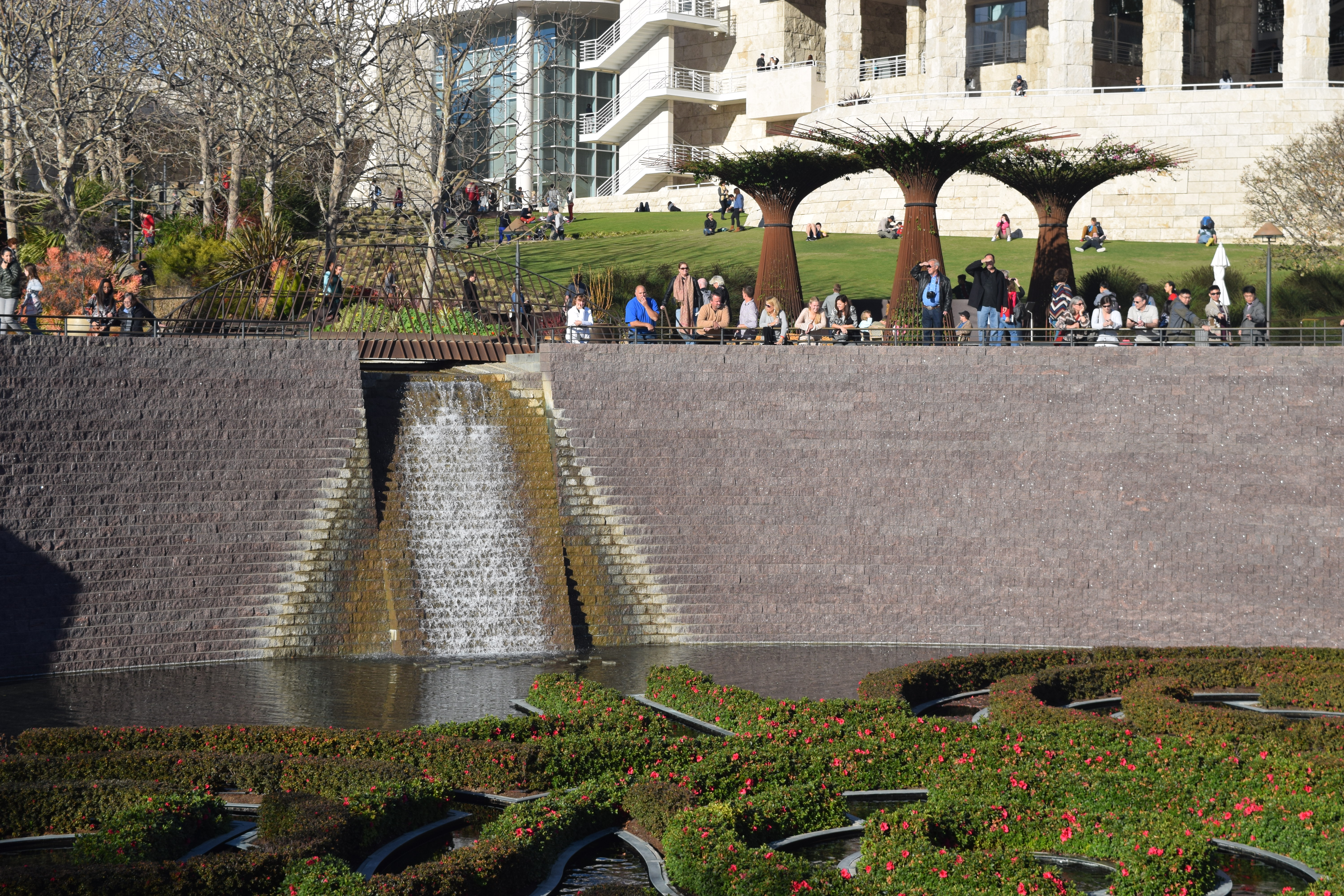 The Getty Center is a popular destination in LA, which means that it draws massive hordes of people and long lines of cars. In fact, when we first arrived they had just blocked the entrance as the parking garage had filled. We drove on for a few minutes, then returned. Fortunately the second time was the charm and we were able to get in.