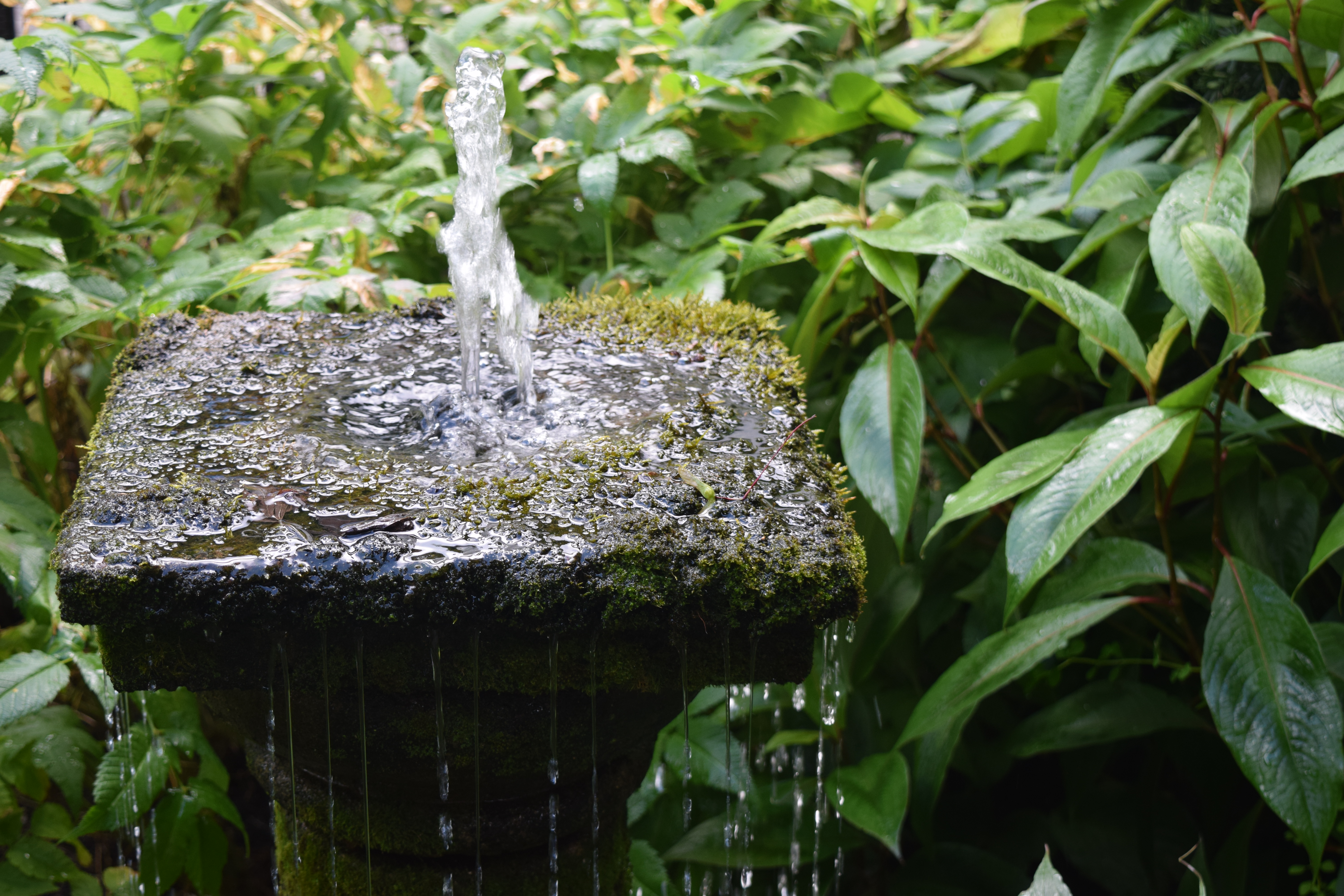 Great fountain. I like the mossy look, plus this is should be an excellent spot for birds, with both splashing and shallow running water..