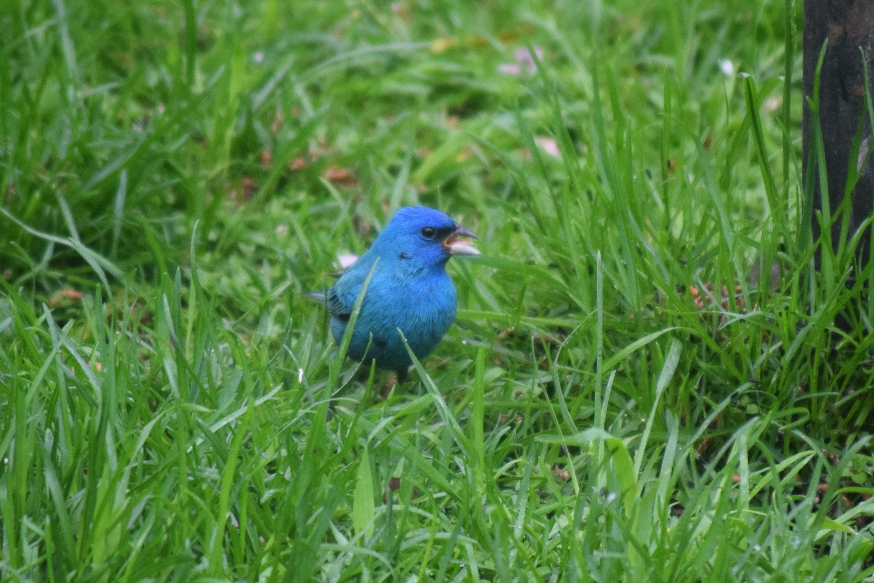 Maybe three years ago Judy and I saw an indigo bunting foraging for seeds in the back garden. These are small birds, about the size of a sparrow or goldfinch, but what they lack in size they make up for with the most amazing electric blue color.