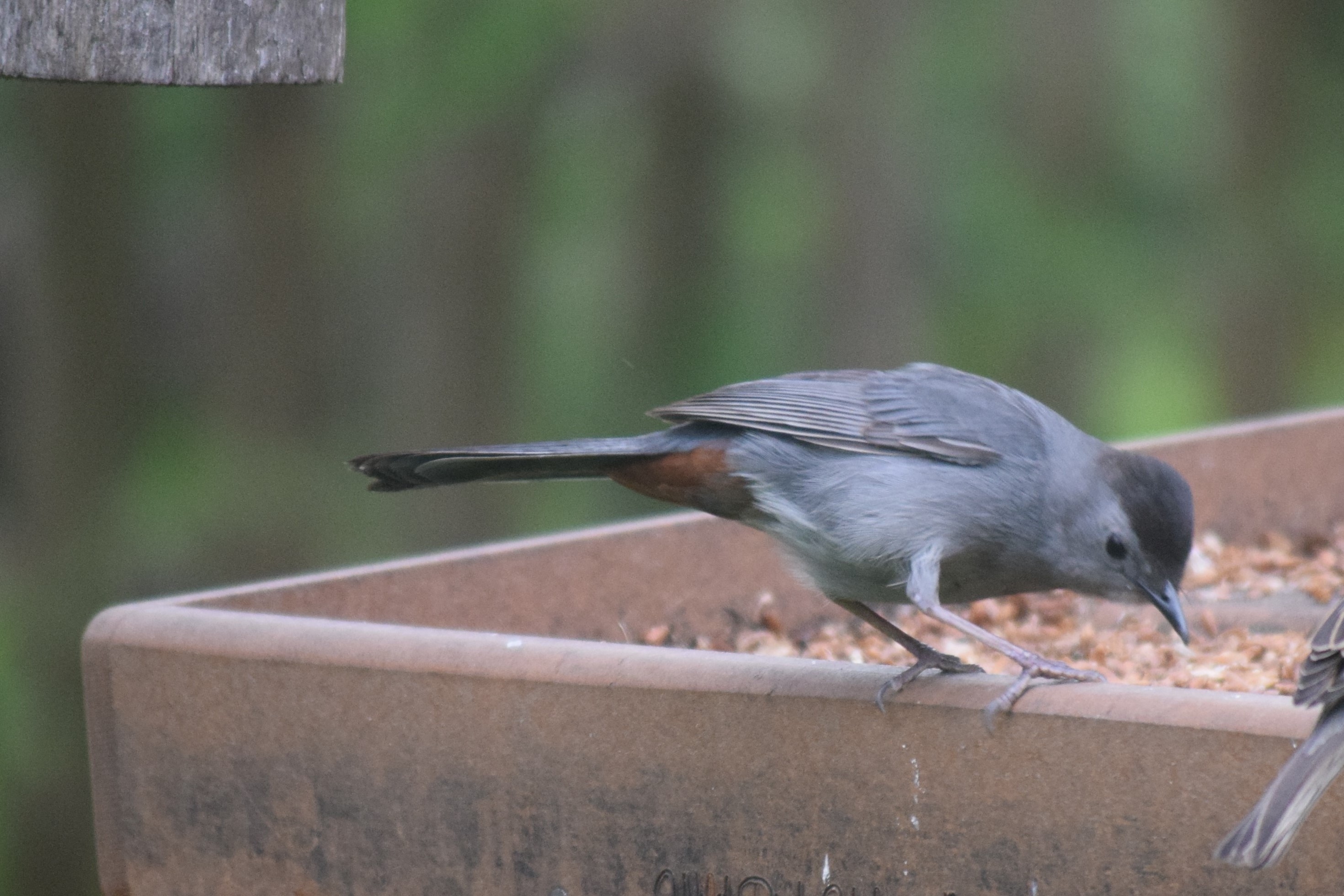 Gray Catbirds have a black cap and a reddish brown patch on their rump.