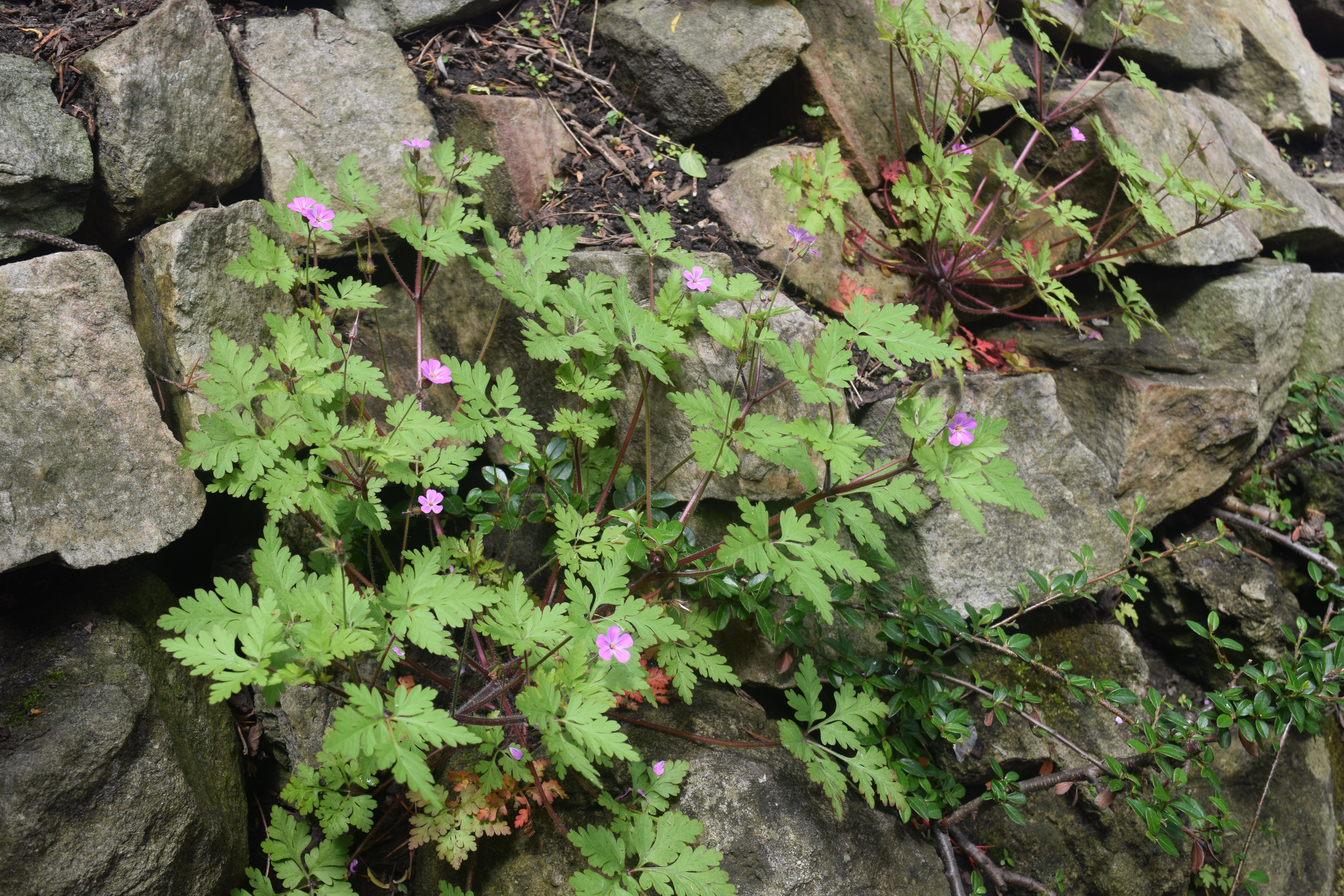 9. That little geranium is Geranium robertianum — herb Robert, which I grow (it’s a vigorous self-seeder, but insistent rather than invasive) because it’s my husbands name. It isn’t native, but it’s naturalized in North America. Looks great in cracks in stone walls, as you’ve seen. I love these gardens, but it’s likely they need staff to attend, especially on those slopes.
