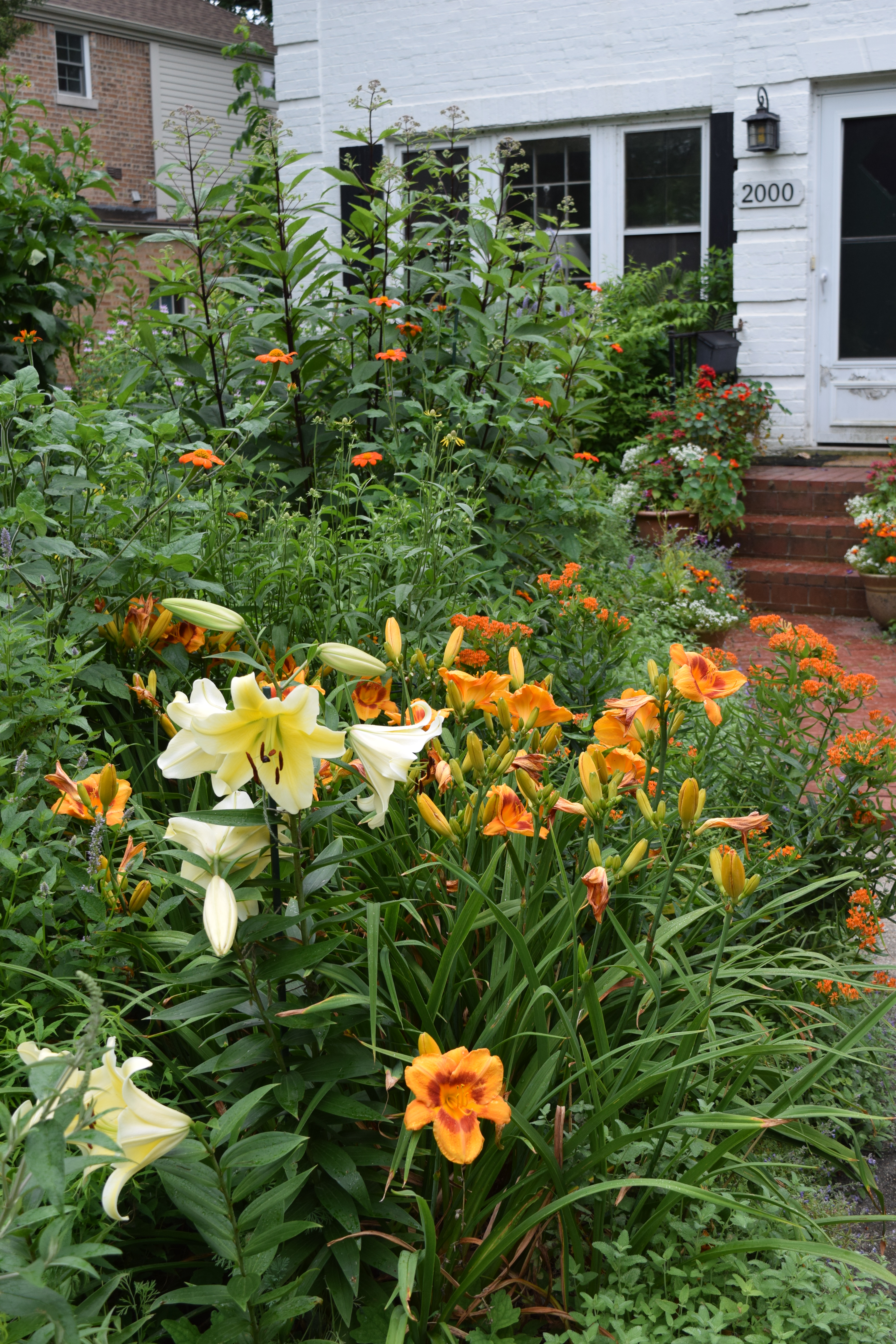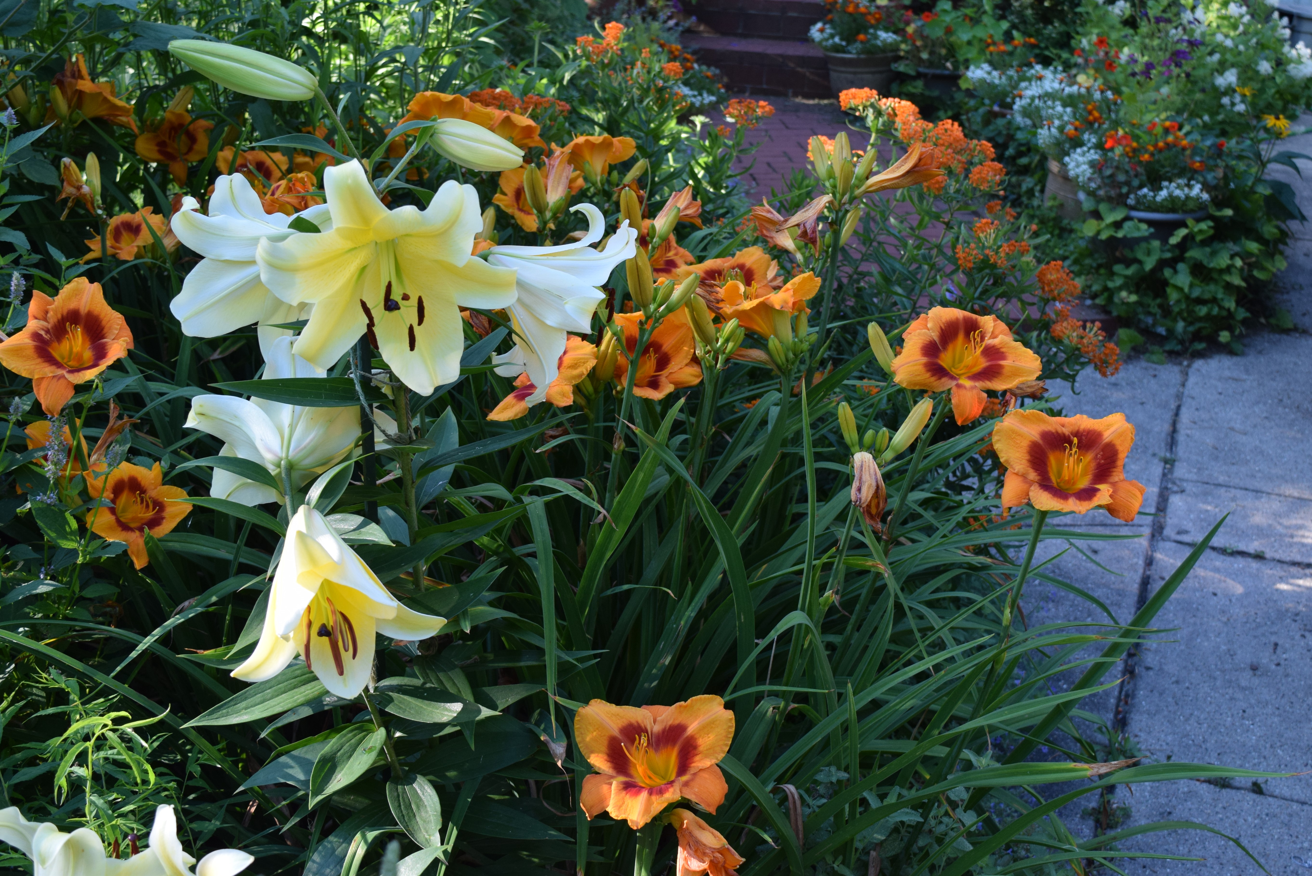 2. I love all the orange in your front garden! I have big white trumpet lilies that are immensely fragrant. I tried bringing some of them into the house once and they were too strong. I ended up moving the vase outside. I think the freckles are cute. 🙂