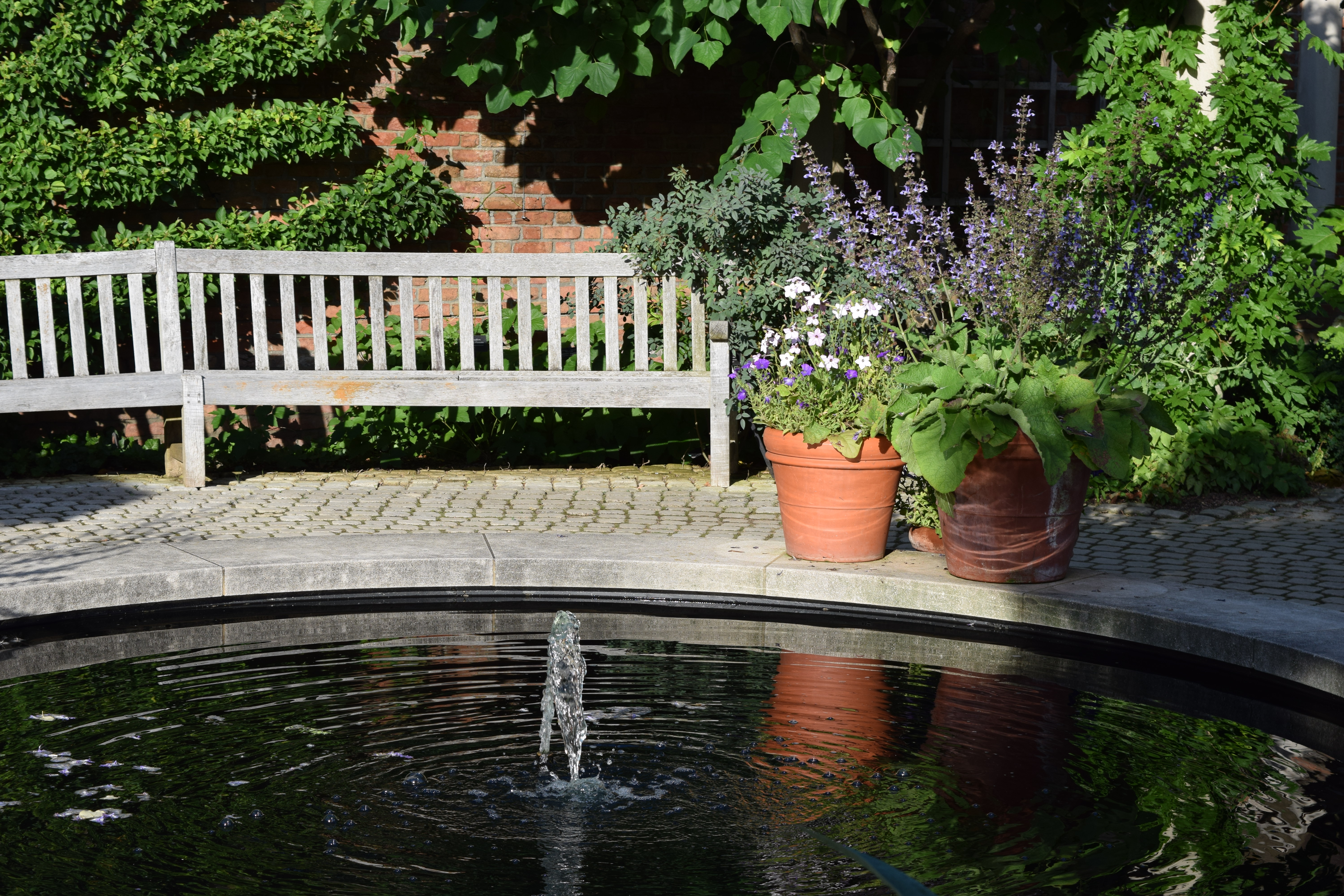 Here is a second water feature. I’d be reluctant to sit in that bench, though, there would be a grinning satyr looking over your shoulder.