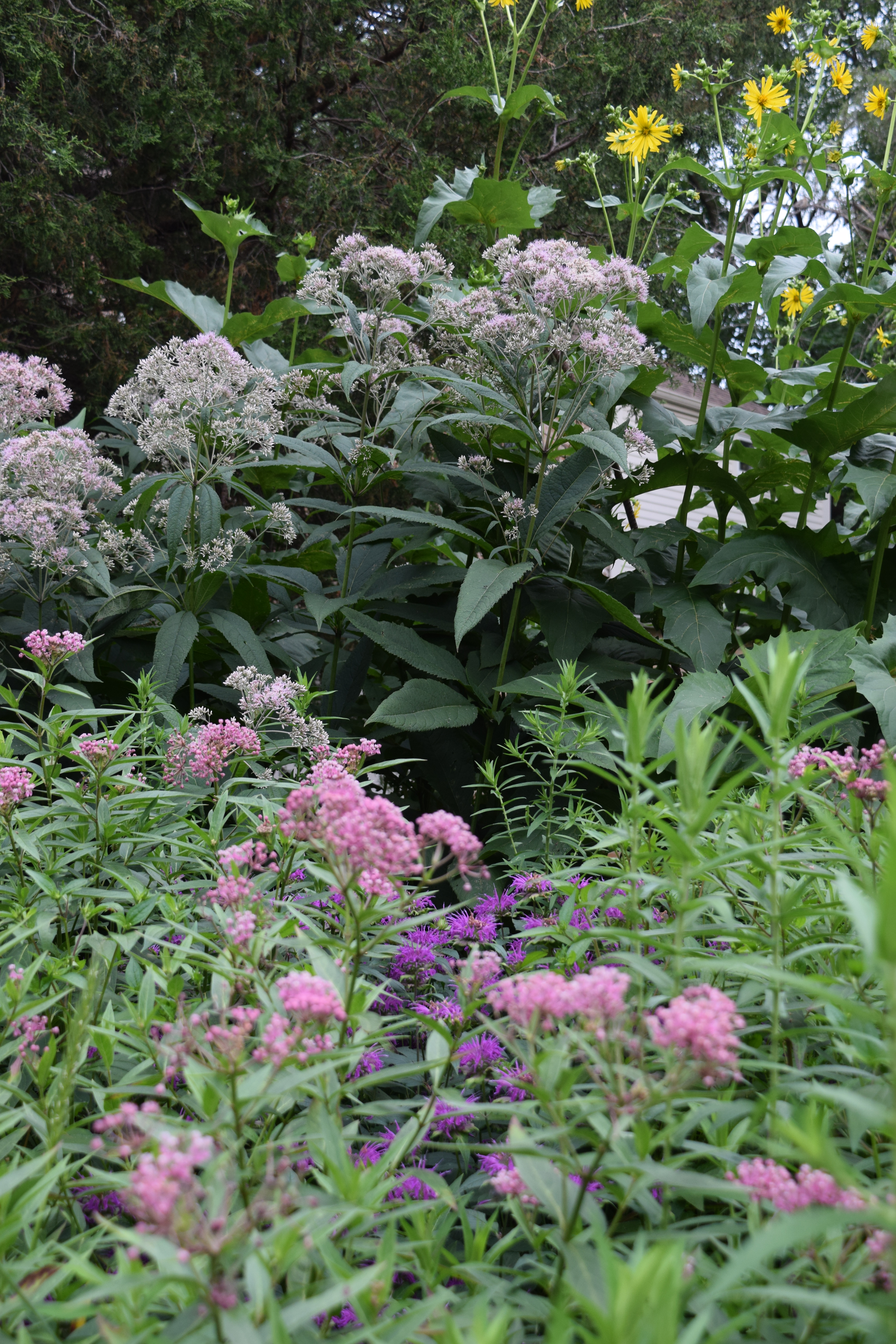 Sweet Joe Pye Weed, Swamp Milkweed, Monarda ‘Purple Rooster’