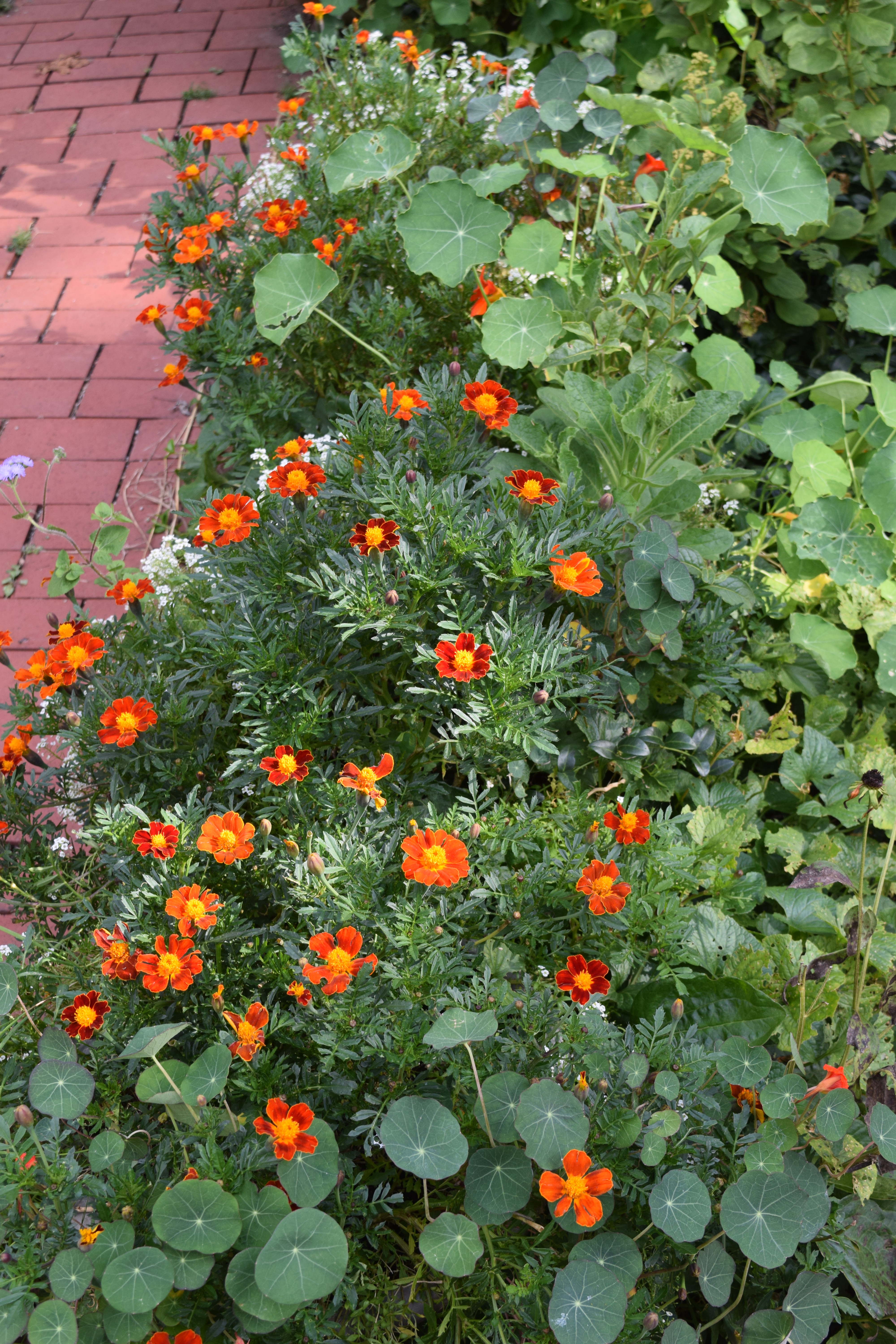 In terms of container plants, the Nicotiana and Nasturtiums have pretty much thrown in the towel blooming-wise. On the other hand, other container plants have found renewed vigor in September. The ‘Disco Red’ Marigolds (Tagetes patula), for example.