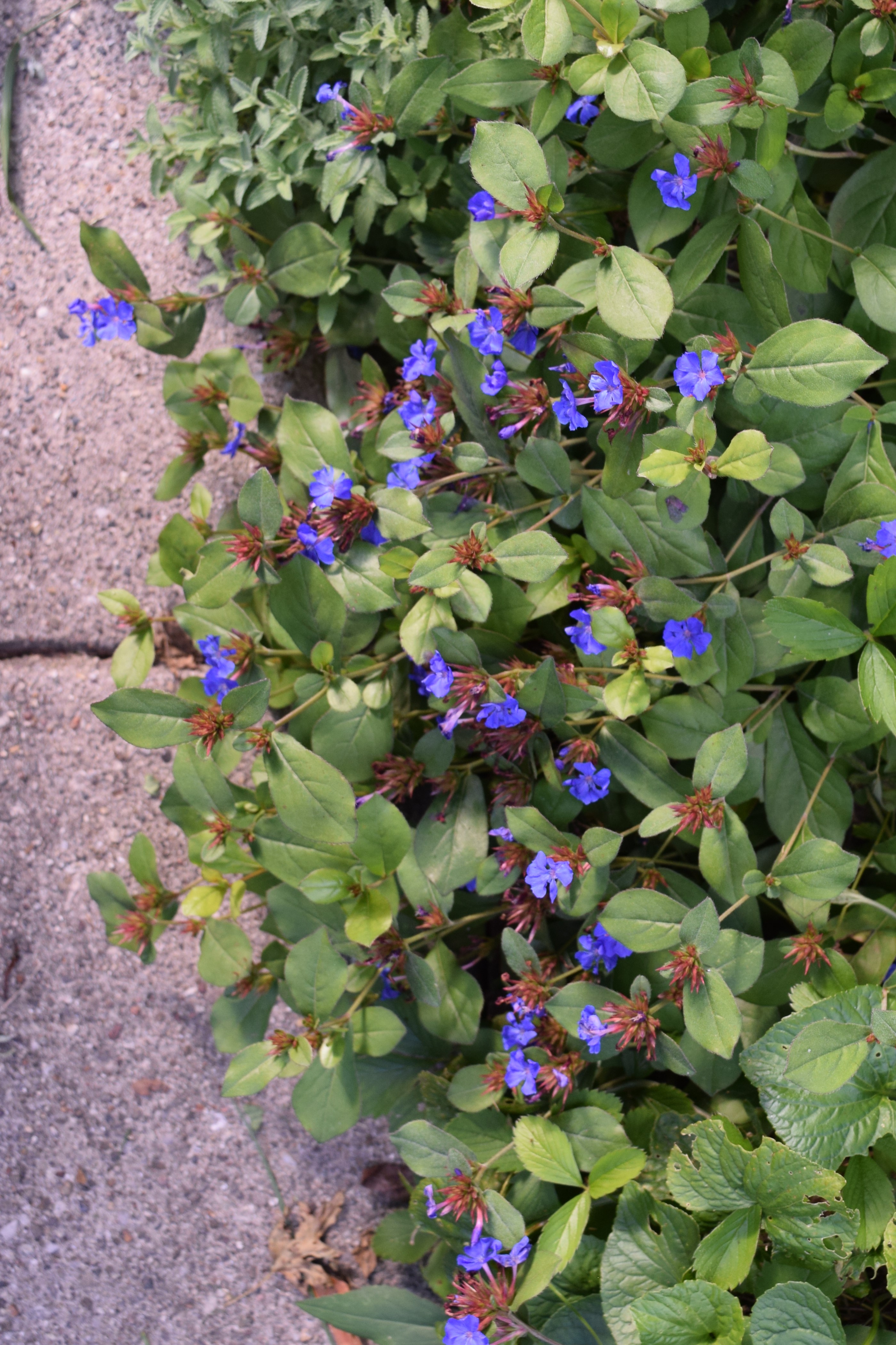 In the same bed there’s a sizable and growing patch of Plumbago (Ceratostigma plumbaginoides). This picture really doesn’t do justice to the deep blue flowers. This is a really nice late-blooming groundcover for sunny areas.
