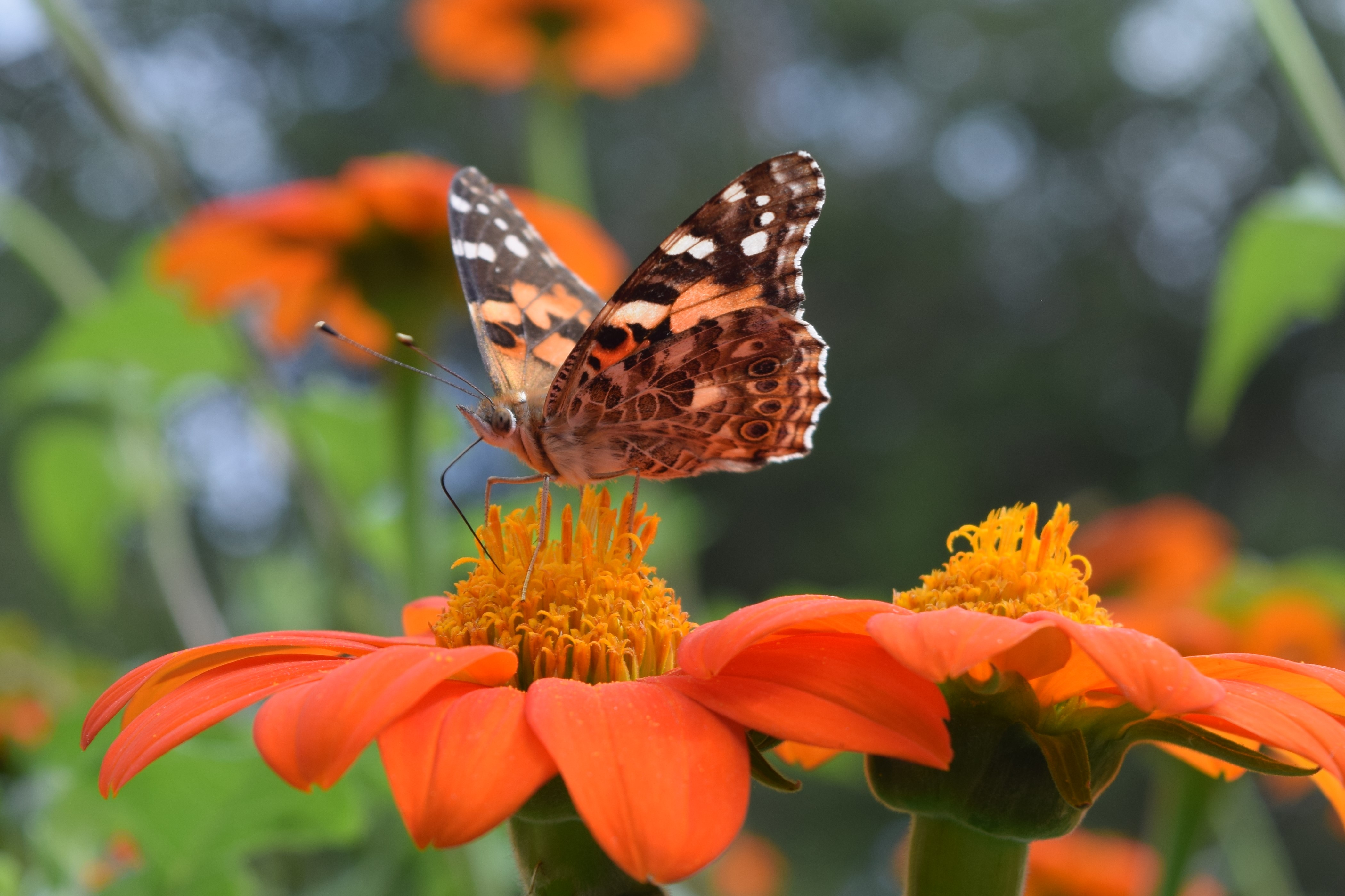 Today there was also a Painted Lady feeding on the Mexican Sunflower (Tithonia rotundifolia). Looks like she is sucking nectar through a straw. Tithonia continues to be our champion butterfly magnet.