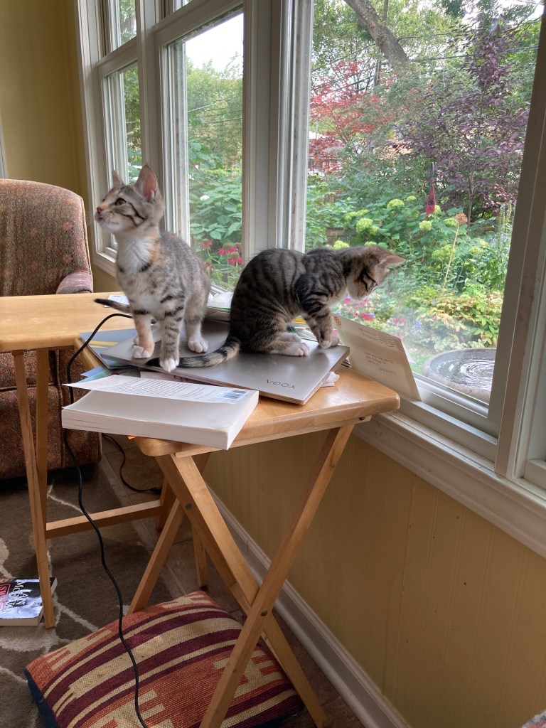 Oh, kittens! Two! They must be a lot of fun to watch. I have three cats, one abandoned that showed up in July. I thought I was a dog person (have only one), but cats seem to send out memos to show up and move in.