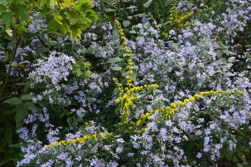 If you walk in front of our house these days you’re likely to be impressed by the masses of Aster flowers, most notably those of Short’s Aster (Symphyotrichum shortii).