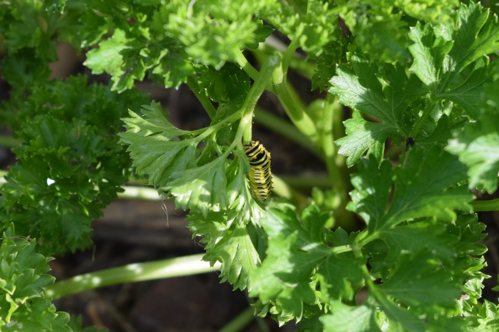 5. Like you and Judy, I also grow tomatoes and herbs. And rhubarb. We part ways on cilantro. I’m one of those who can’t stand the flavor. I sow Italian parley seed around flower borders every February, pouring boiling water over the new seed, then covering with a light layer of soil and tamping down. As you note, the swallowtail caterpillars love the mature leaves and stems.