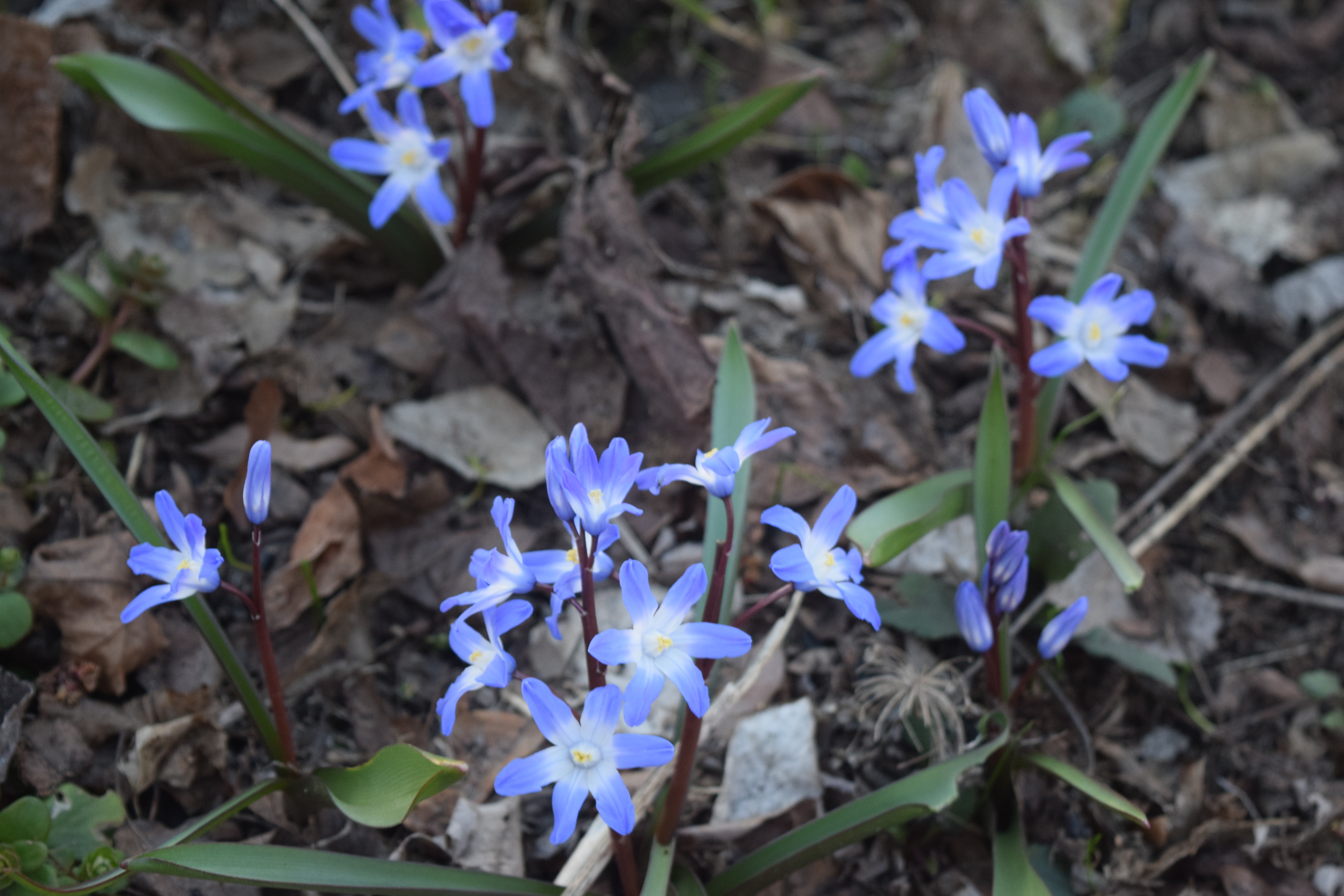 1. In the third photo, your flowers look a bit like our two native blue star (Amsonia) species. They’re such pretty plants, and there are reports of them blooming now. I hope to find some; they will bloom into May or even early June, depending on the conditions. How long does the glory of the snow keep its bloom? It’s a lovely thing.