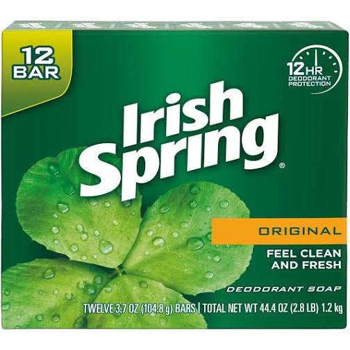 He cuts the bar of soap into slabs, not quite an inch thick. And do note, just because it’s called “Irish Spring” doesn’t mean it has any connection to Ireland! The soap is green and white – maybe it dates back to the Kennedy administration? Some advertising guy thought “Irish” would help sell it. 😳🤷🏻♀️😁