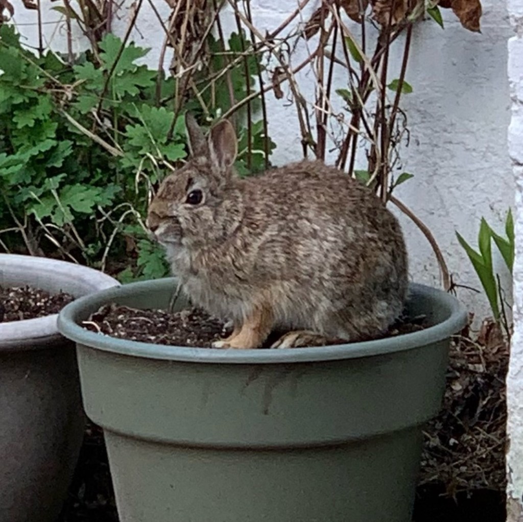Lovely photo of that fat and happy “potted” bunny… I have encounter them as well in last 2-3 years. Where are the coyotes when you need them…