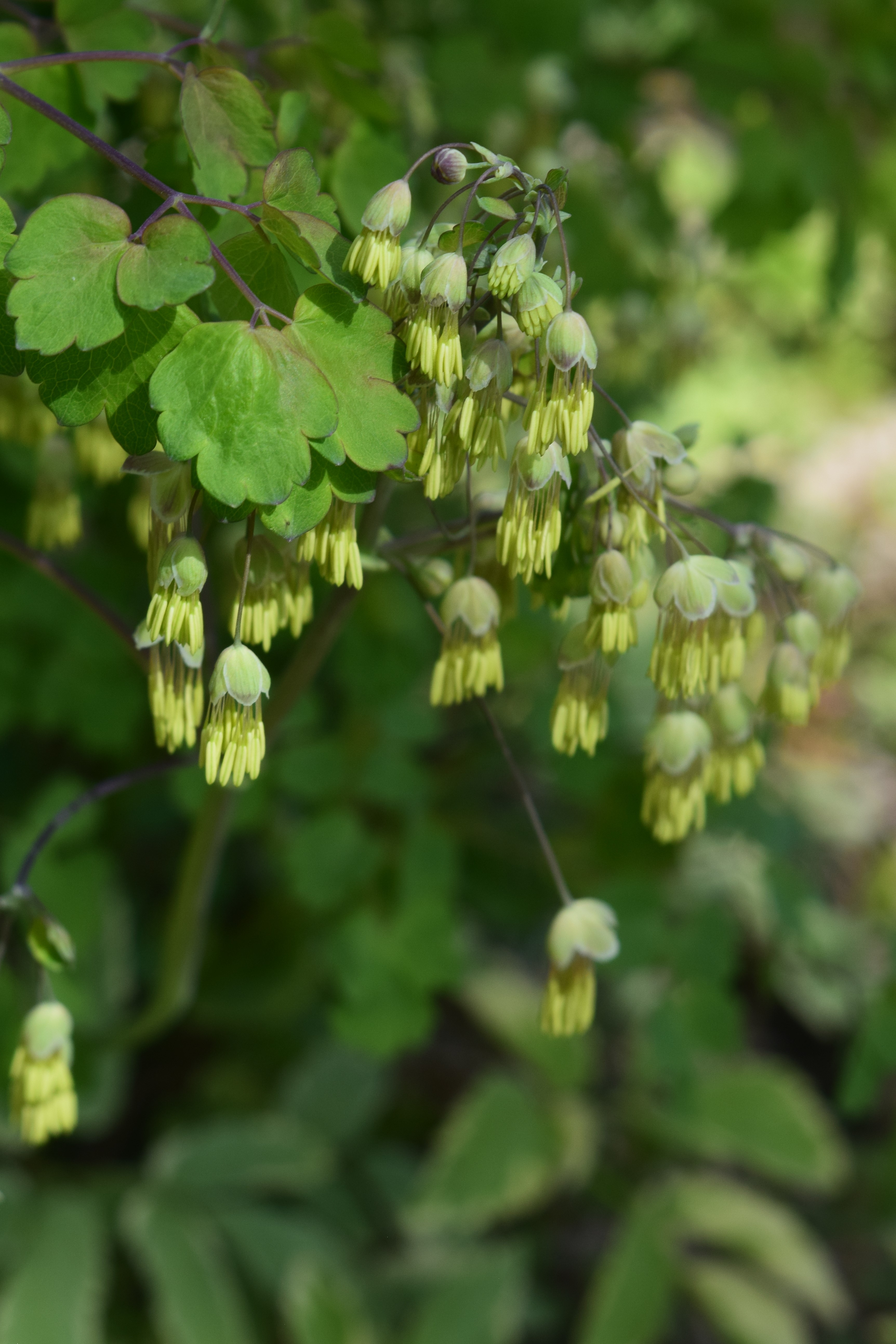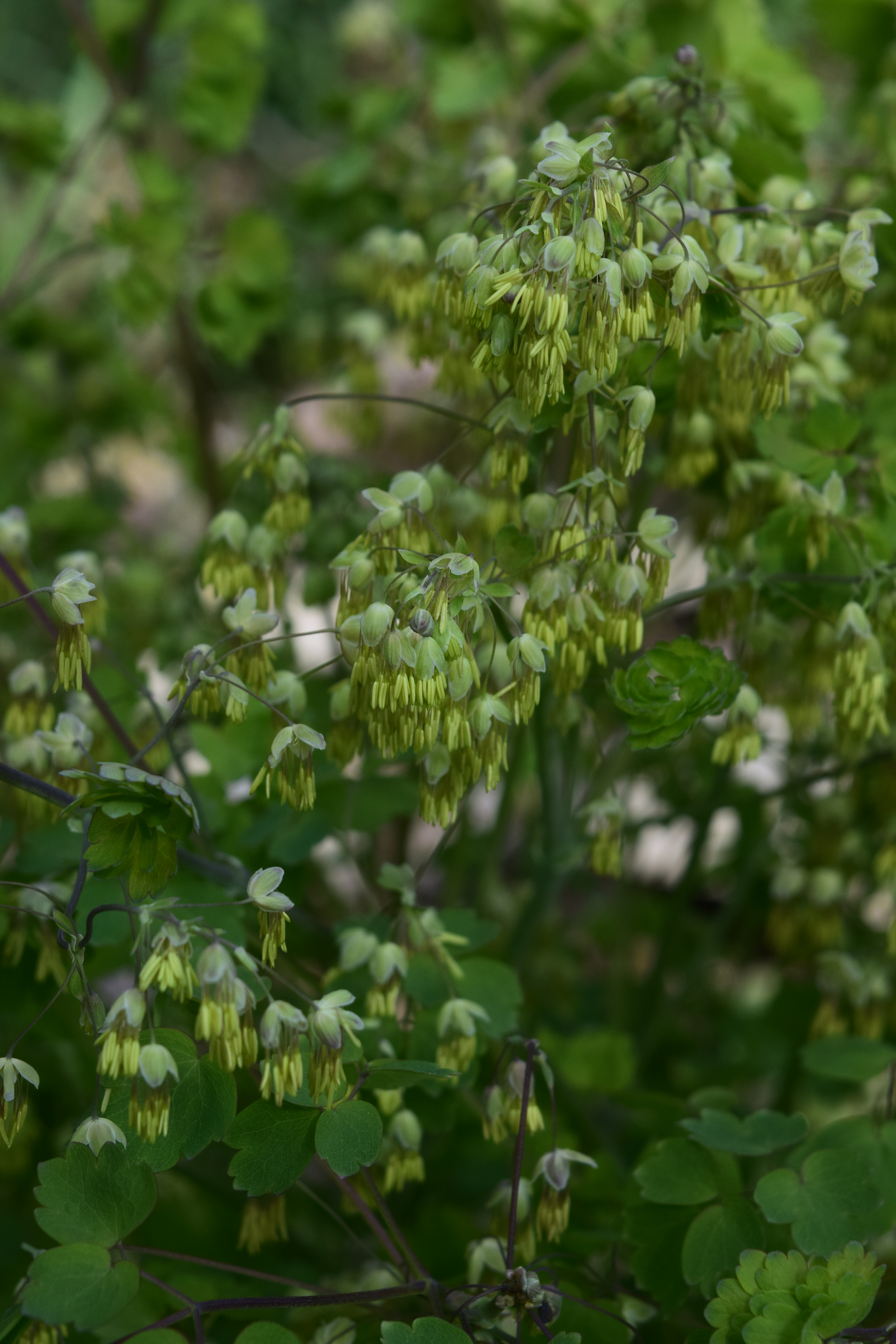 One option worth considering is Early Meadowrue (Thalictrum dioicum). We have just one of these, which I plunked onto a tree-stump planter. It was kind of a random purchase, but I’ve grown to increasingly appreciate it.