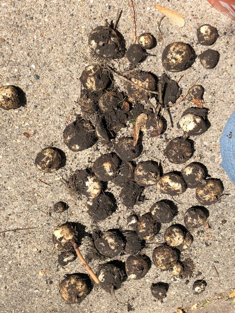 In other news, Judy and I finally lifted the ‘Globemaster’ Allium bulbs. After planting 5 bulbs over ten years ago, we dug up more than 50 bulbs today (many quite small), and we probably left a bunch in the ground. Lifting the bulbs was harder than expected as there was a tree root growing right through the middle of the patch.