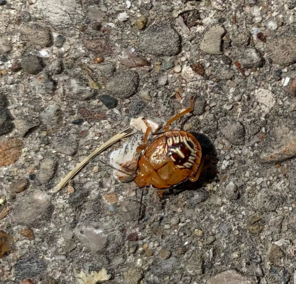 As I wrote recently, our friend Jo ana came over to help with the garden last week. She is a keen observer of the natural world. This applies to insects as well as flying Geranium seeds. So we were inspecting some of the plants when we saw something that looked like a tick. Instead of squishing it, we tried to get a better look and as a result the critter ended up on the sidewalk.