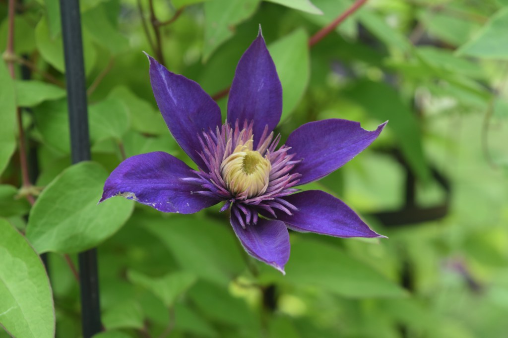 The ‘Jackmanii’ is blooming well, despite losing part of its root run due to driveway construction two years ago.