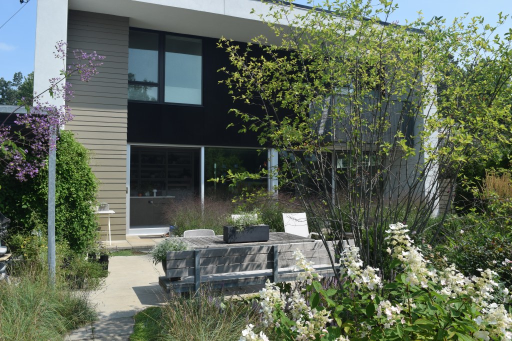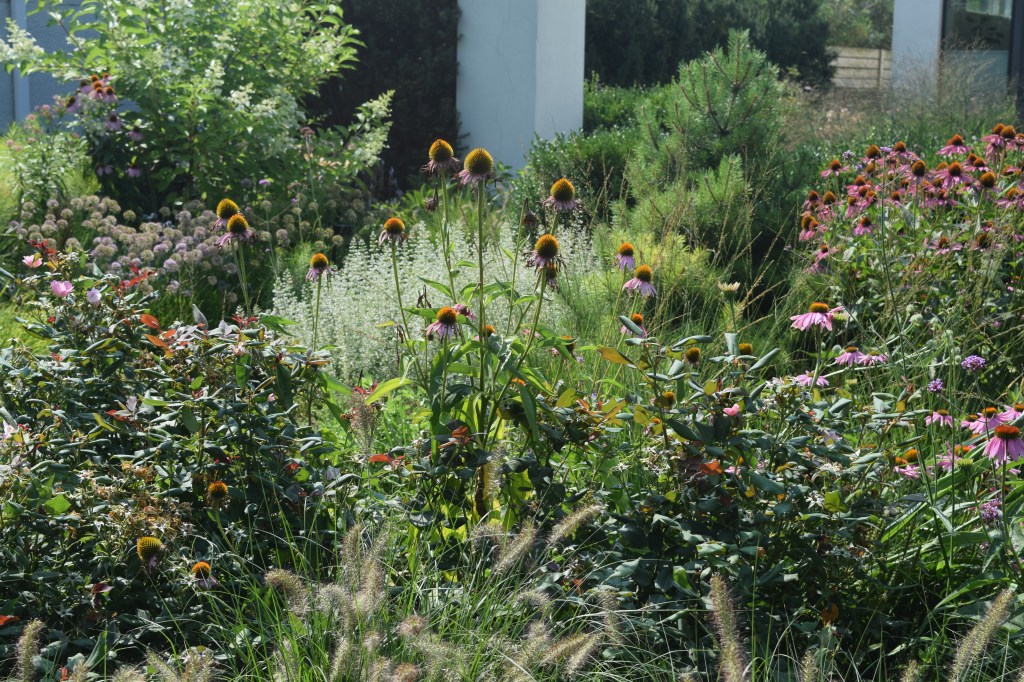 I thought this garden was very much in the spirit of Piet Oudolf’s Lurie Garden, not only in the choice of perennials but also in how the textures knit together so well. And yet it also had a good deal of originality, as became even more clear behind the house.