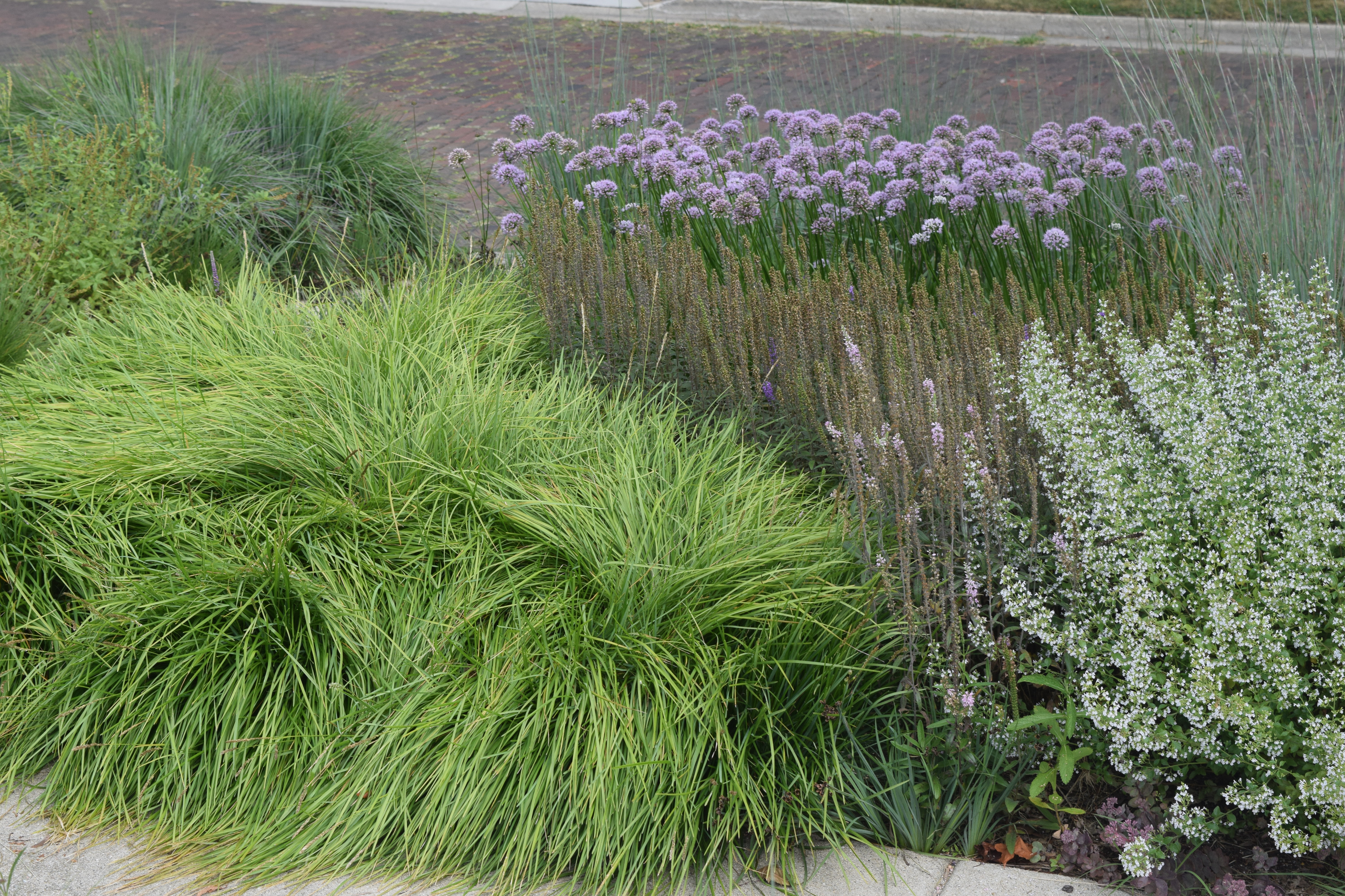 I thought the parkway planting was superb. Here you can see hybrid Moor Grass (Sisleria ‘Greenlee’), Allium ‘Summer Beauty’, and Calamint (Calamintha nepetoides).