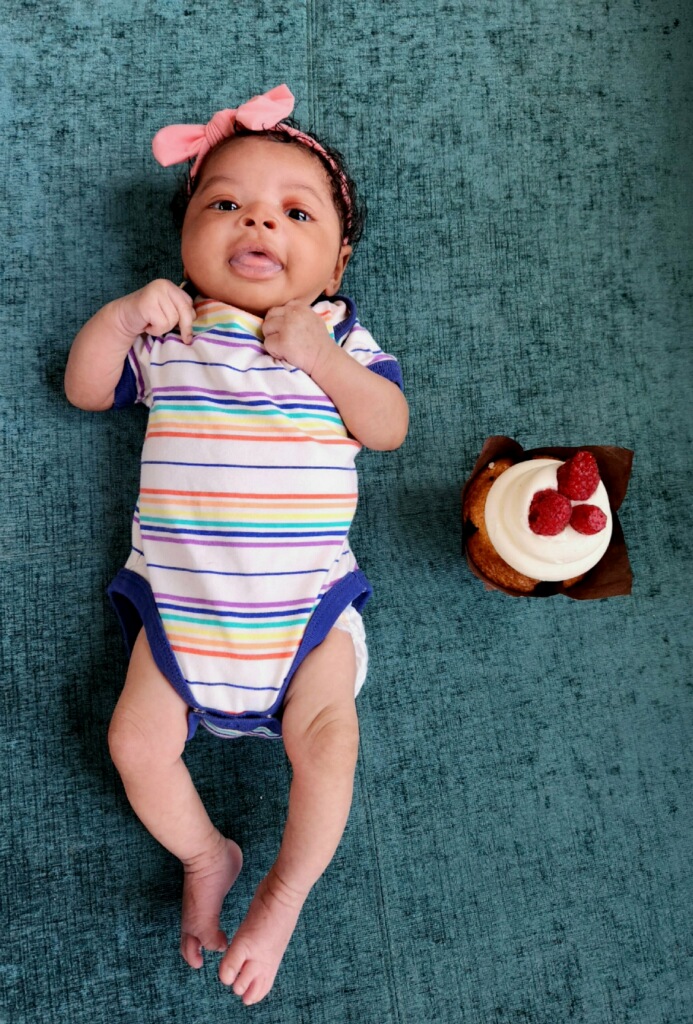 I took up embroidery during Covid, and this dandelion onesie that Addie is modeling during tummy time is part of my handiwork.