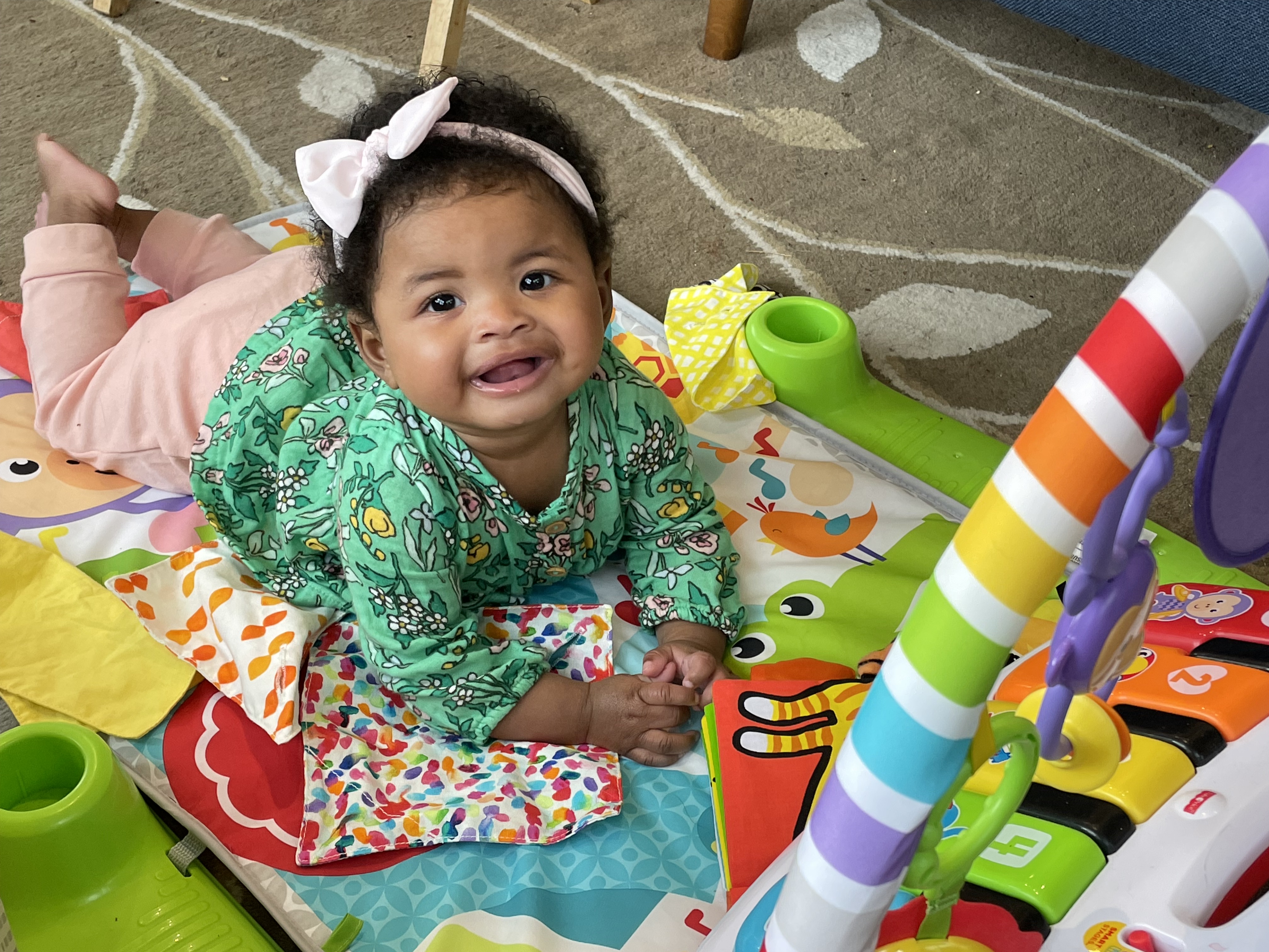 One more bit of spring growth to show you — our delightful granddaughter Addie, who is now eight months, and has just started to crawl. She is absolutely full of smiles and giggles.