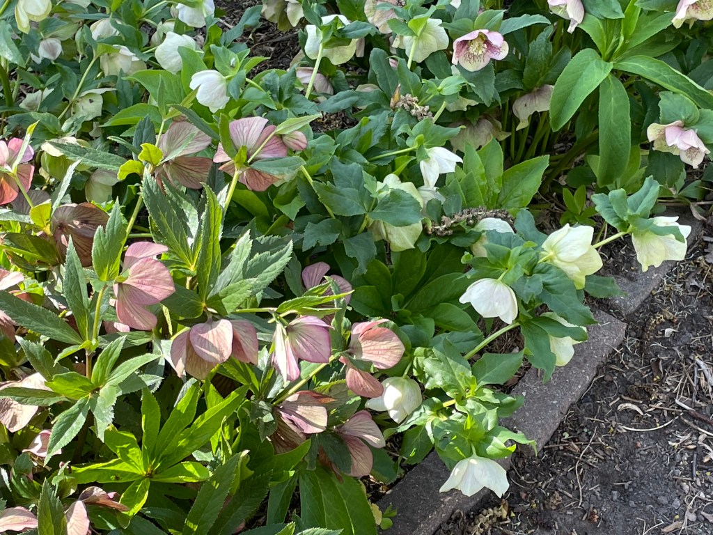 The hellebores are covered with flowers, and have been for weeks. I’ve picked five bouquets to fill bowls, for myself and for friends, and still there are so many more flowers. One thing I have learned: I put about 15 flowers in a Tupperware with some water to send home (to St. Paul) with David for his wonderful partner Meridith. Alas, when the flowers get their faces wet, they don’t want to float any more. I further proved this by taking some flowers to friends who invited me to dinner; they (the hellebores, not the friends) only had 20 minutes in water, not the seven hour drive to Minnesota, but they too refused to float properly.