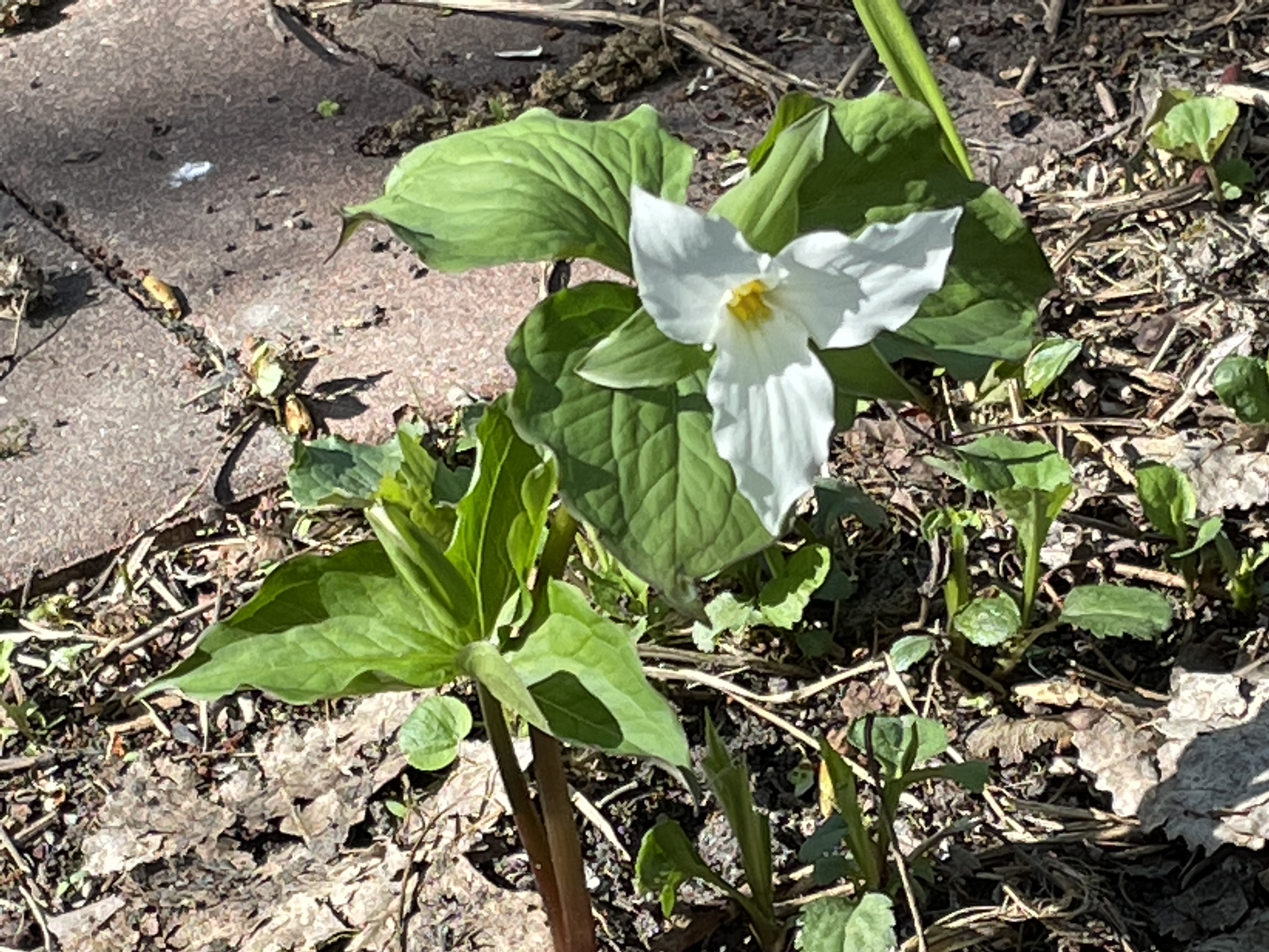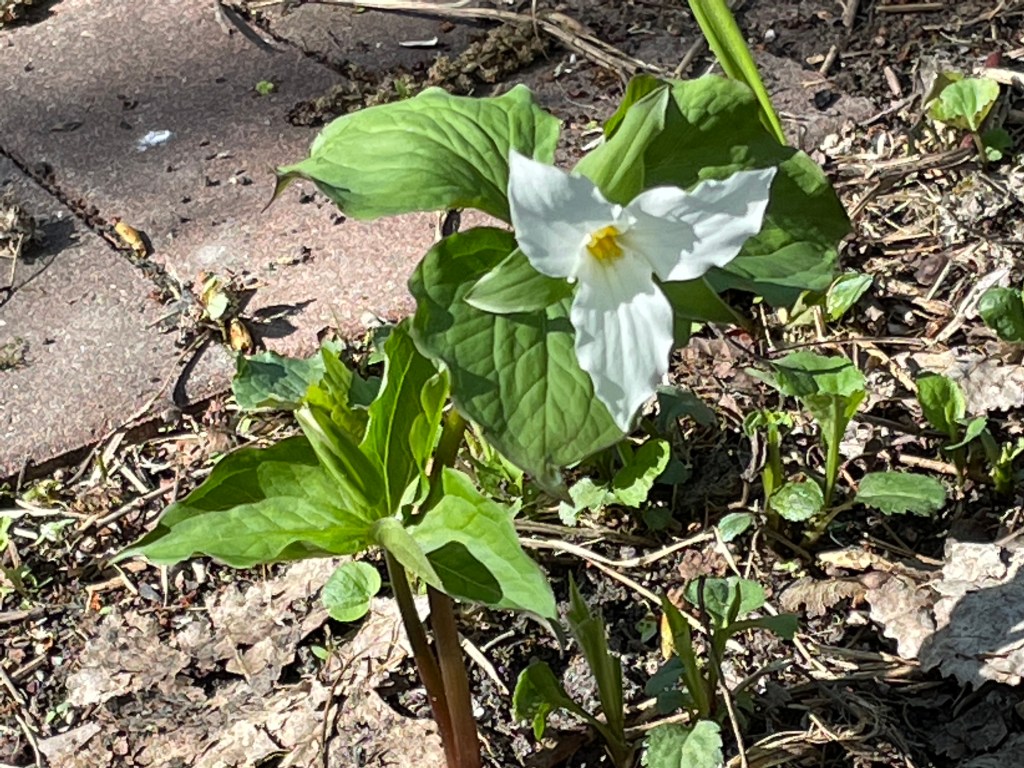 Here’s the trillium that Jason planted a few years ago. There are two or three plants (one too small to be sure that’s what it is). I thought they had grown bigger and more established, but I could be wrong. At least they are still here and blooming. They have a history of being difficult.